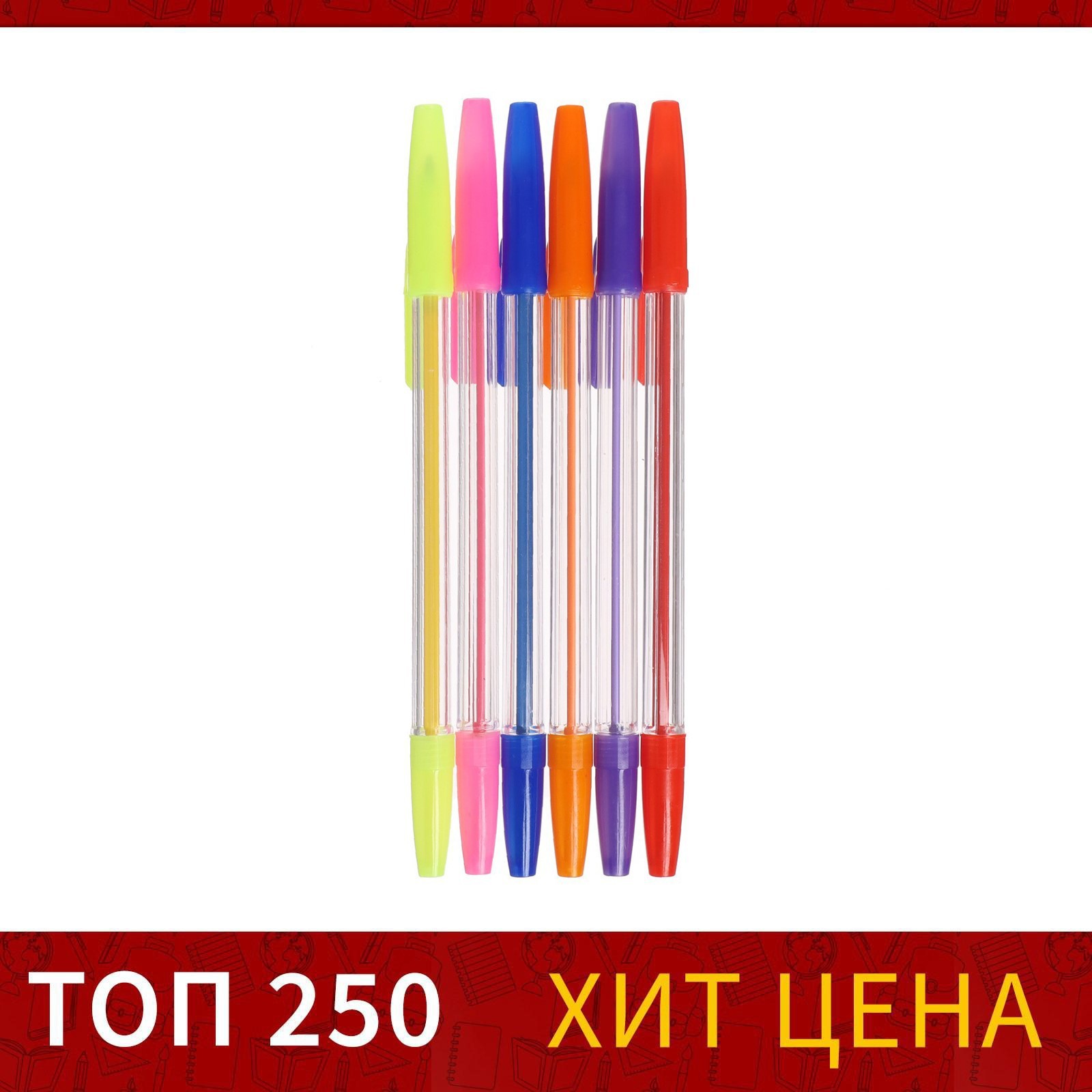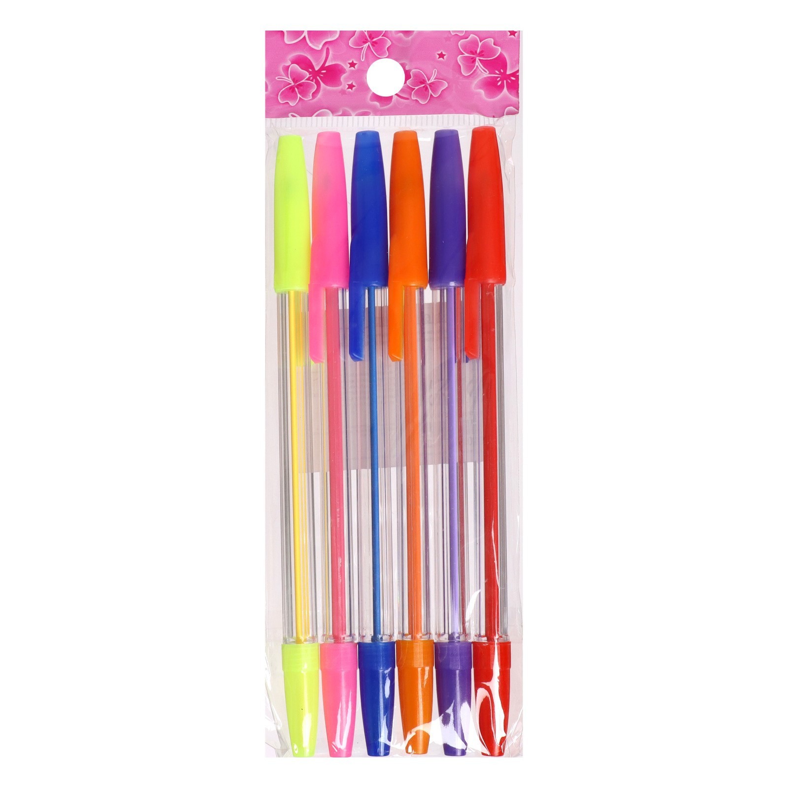 Набор ручек шариковых, 6 цветов, корпус прозрачный с цветными колпачками