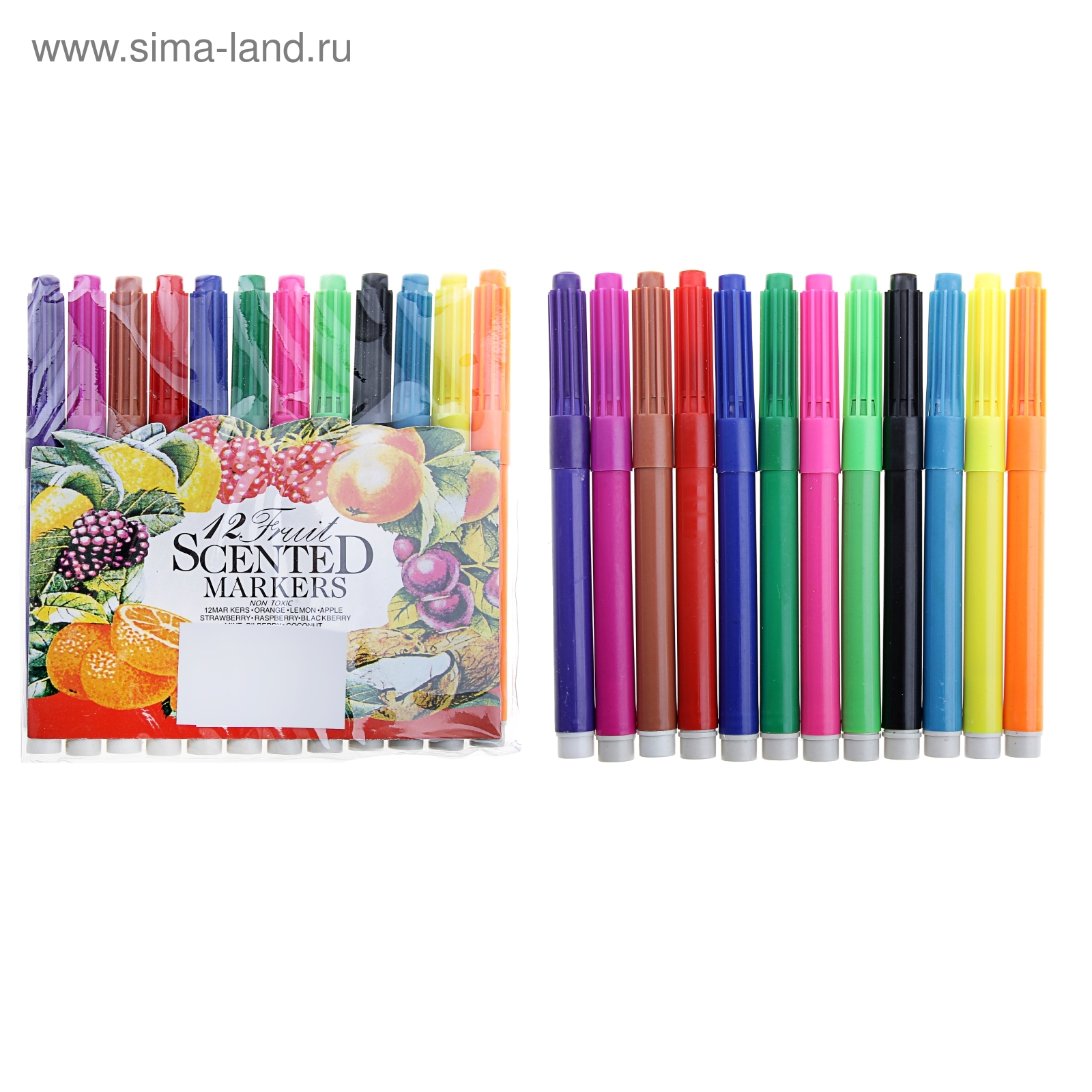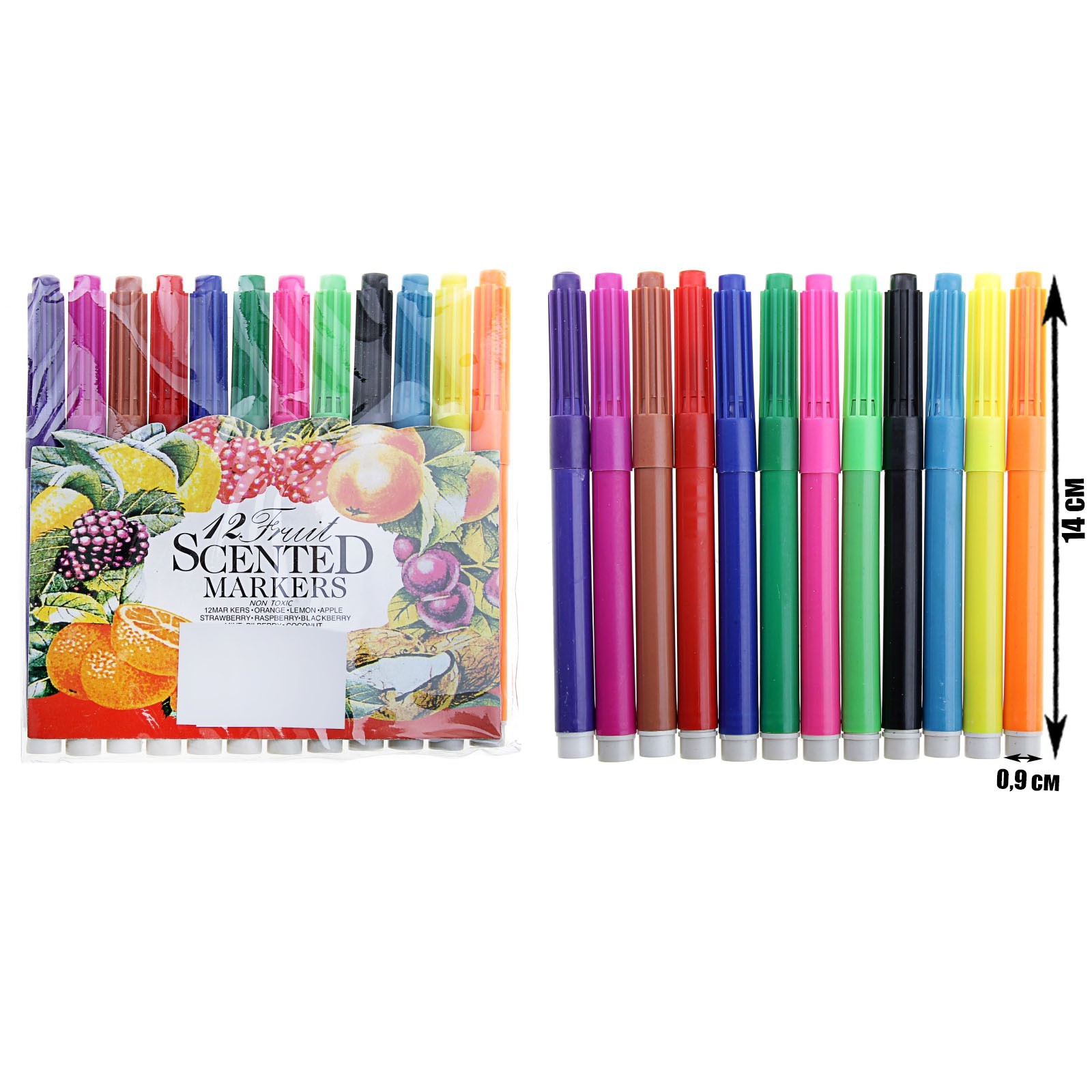 Фломастеры 12 цветов, толстые, вентилируемый колпачок, микс