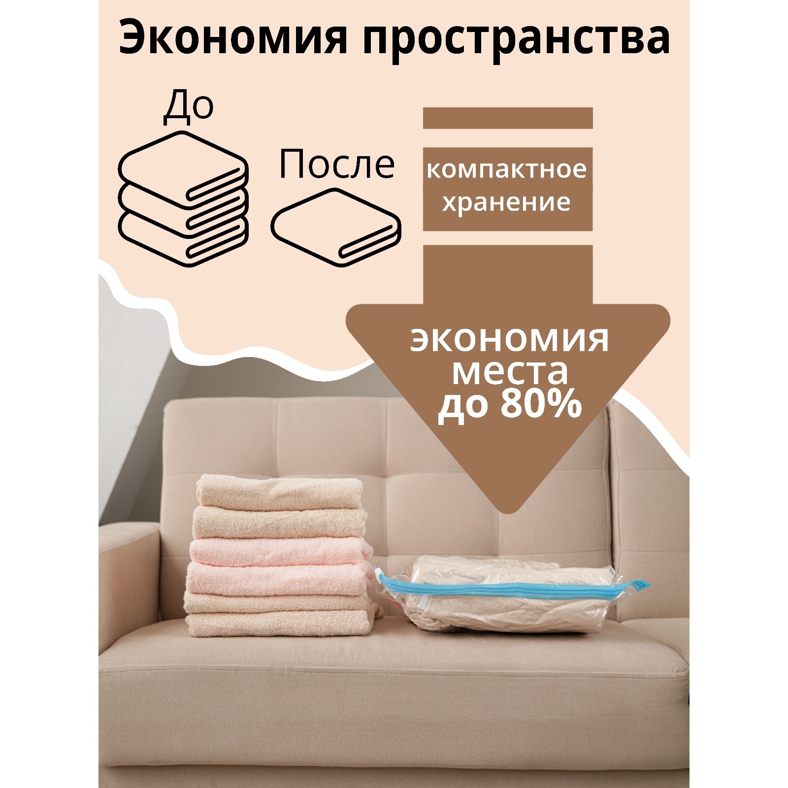 Вакуумный пакет для хранения вещей доляна, 60x80 см, с рисунком. Упаковочные вакуумные пакеты отлично подходят для хранения вещей таким образом, чтобы они не занимали слишком много места. В действительности, пространство, занимаемое упакованной в такой пакет одеждой, уменьшается вплоть до 50-80%. Что хранить в мешке? Зимние вещи: пуховики и куртки, шарфы и шапки. Одежду и мягкие игрушки. Постельные принадлежности: одеяла, пледы и подушки. Преимущества: Вакуумные пакеты защитят ваши вещи от влаги, плесени и моли. Прекрасно сэкономят место в чемодане. Вакуумные пакеты можно использовать многократно. Полностью герметичны. Правила по эксплуатации: Вещи должны быть сухими. Если вы положите в пакет хоть один влажный носок, то неприятный запах появится у всех вещей в пакете. Поэтому тщательно сушим вещи перед тем, как сложить их в пакет. Чтобы не повредить пакет, нужно все детали вещей, которые могут порвать пакет, спрятать внутрь или прикрыть другой одеждой. Если же всё-таки вы повредили пакет, то выручить вас может самый обычный скотч. Не забивайте пакет до отказа. А также раскладывайте вещи равномерно. В дороге можно пользоваться небольшим баллончиком спрея для разглаживания одежды, вынутой из пакета. Просто распылите его на измятую вещь. Затем дайте минуту просохнуть. Утюг не потребуется. Если вы упаковываете в вакуумные пакеты пуховые подушки и перины, не откачивайте из пакетов полностью весь воздух. Остановитесь, когда размер пакета уменьшится в два раза, так как более сильное сжатие приведет к повреждению пуховых перьев. Не храните в таких пакетах еду, кожаные и меховые изделия. Желательно каждые 6 месяцев открывать вакуумные мешки, чтобы проветрить вещи. Используйте обычный пылесос или специальный насосМеры предосторожности: Храните пакеты в недоступном для детей месте и вдалеке от нагревательных приборов. Для оптимального применения пакетов следуйте прилагаемой инструкции ниже. Цвет: Разноцветный Длина, см: 60 Ширина, см: 80 tnved: 3924900009 Вид: Вакуумный пакет Материал: ПВХ Вид ручки: Без ручки Наличие клапана: Да  развернуть описание ▼