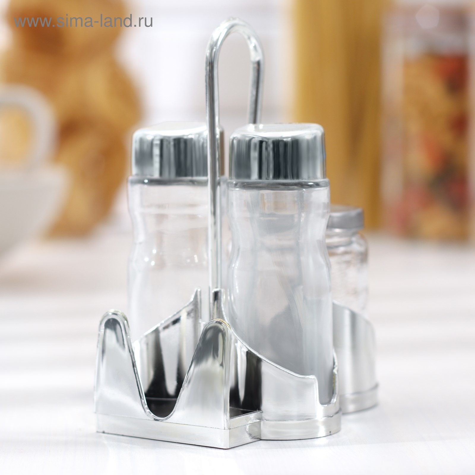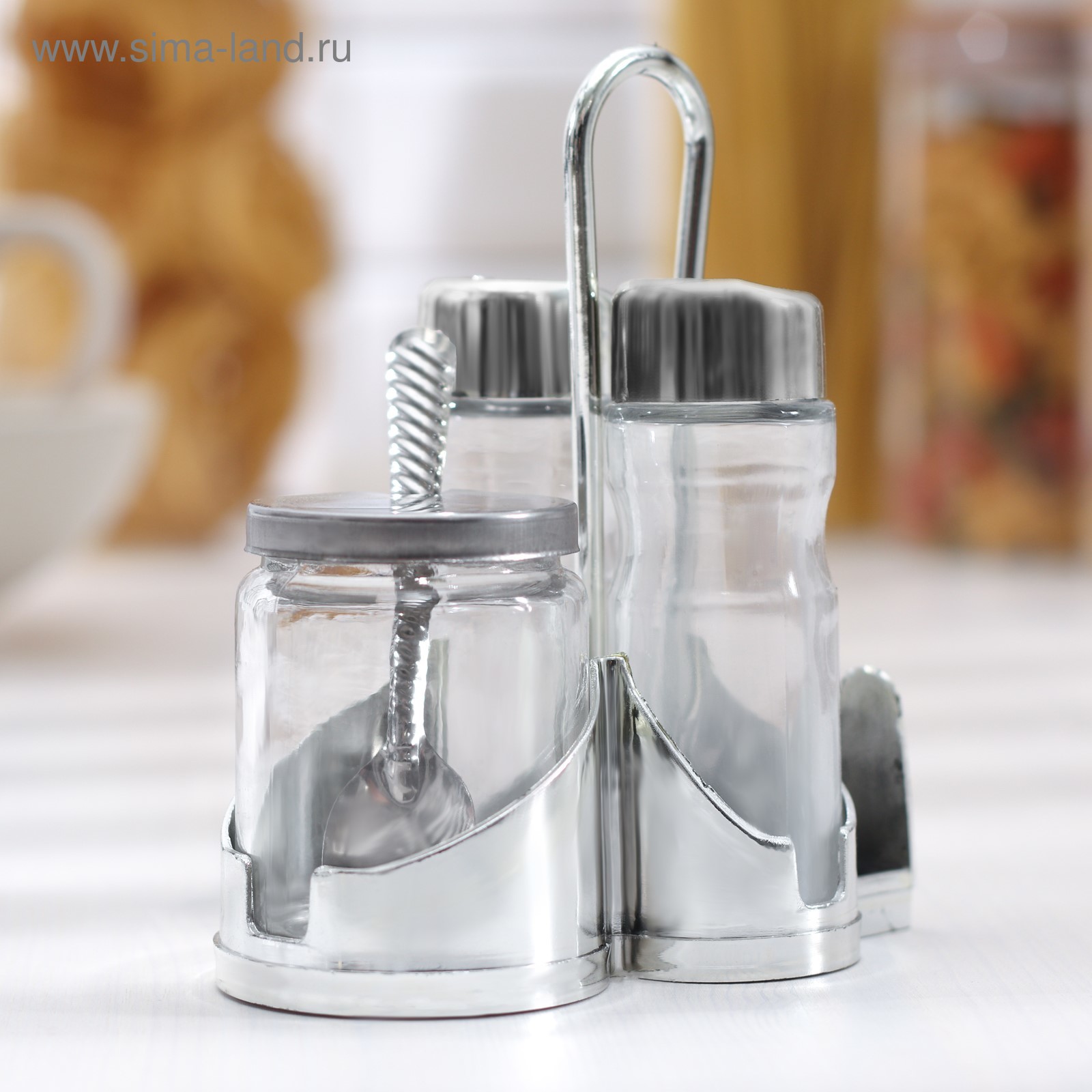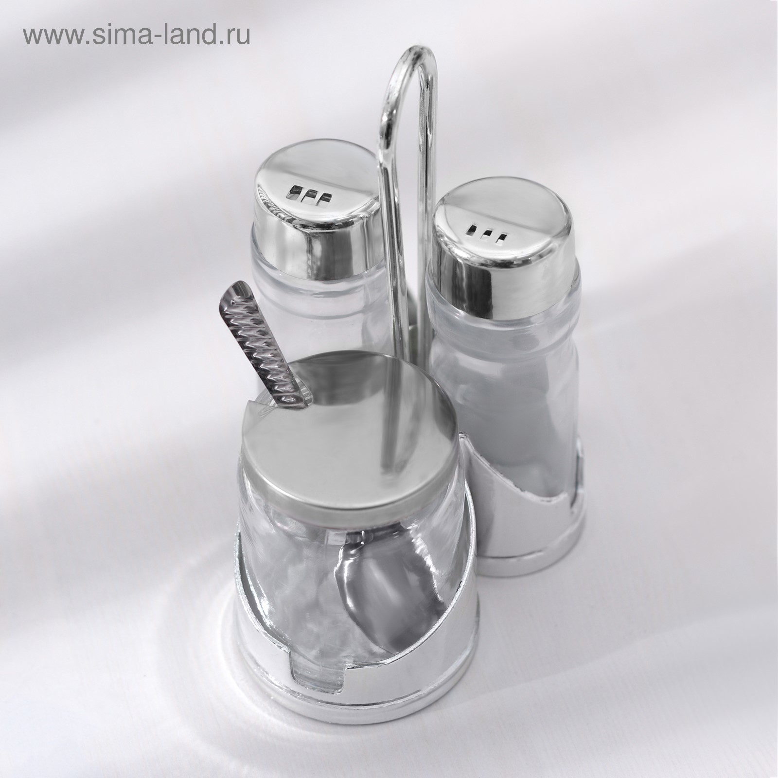 Набор для специй доляна «стиль», 3 предмета: сахарница с ложкой 80 мл, солонка и перечница 50 мл, подставка-салфетница, стекло,