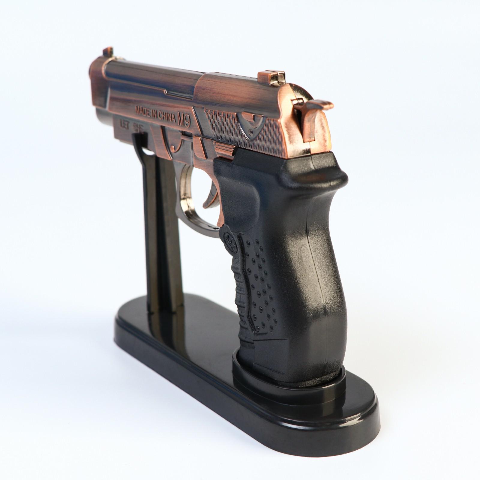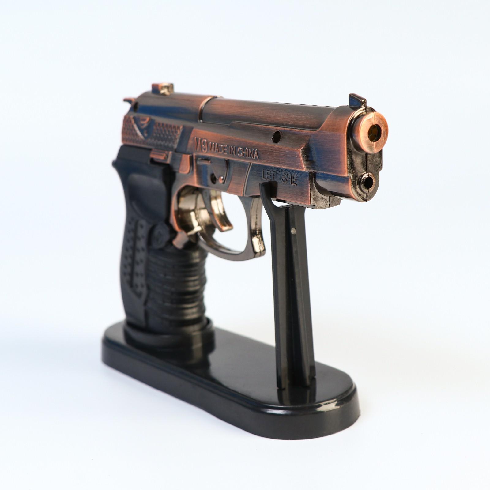 Зажигалка настольная, газовая «беретта», с лазерной указкой, на подставке, пьезо, 11 13 см