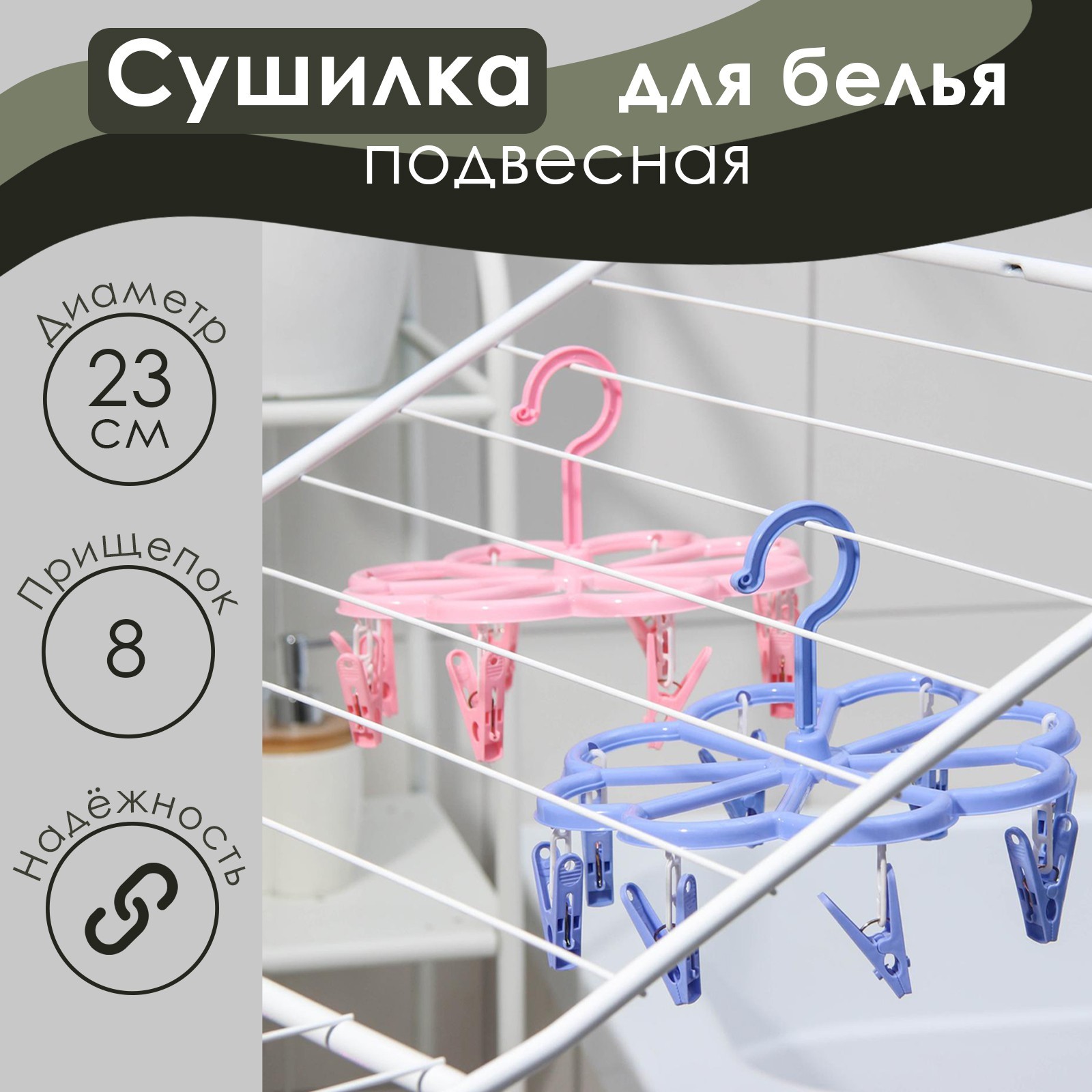 Сушилка для белья подвесная доляна, 23x23 см, 8 прищепок, цвет микс