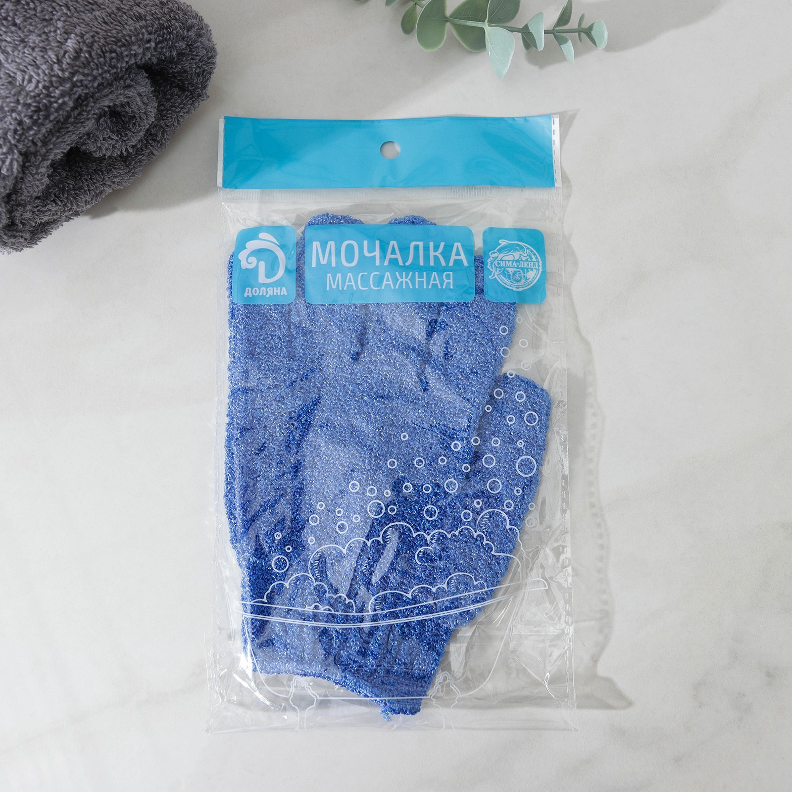 Мочалка-перчатка массажная доляна, 14x18 см, однотонная, цвет микс