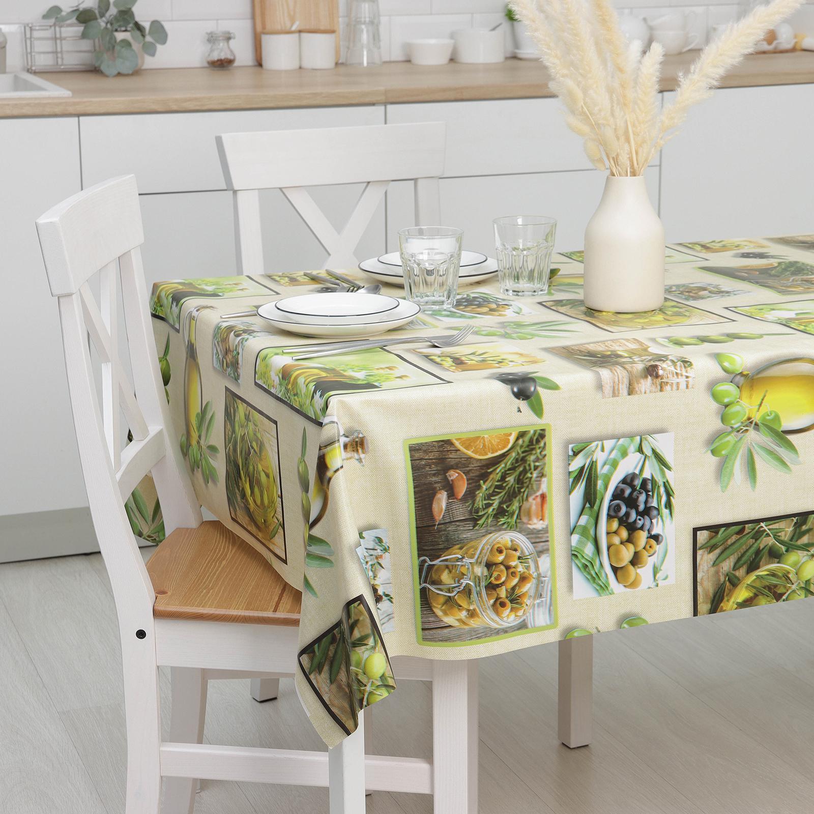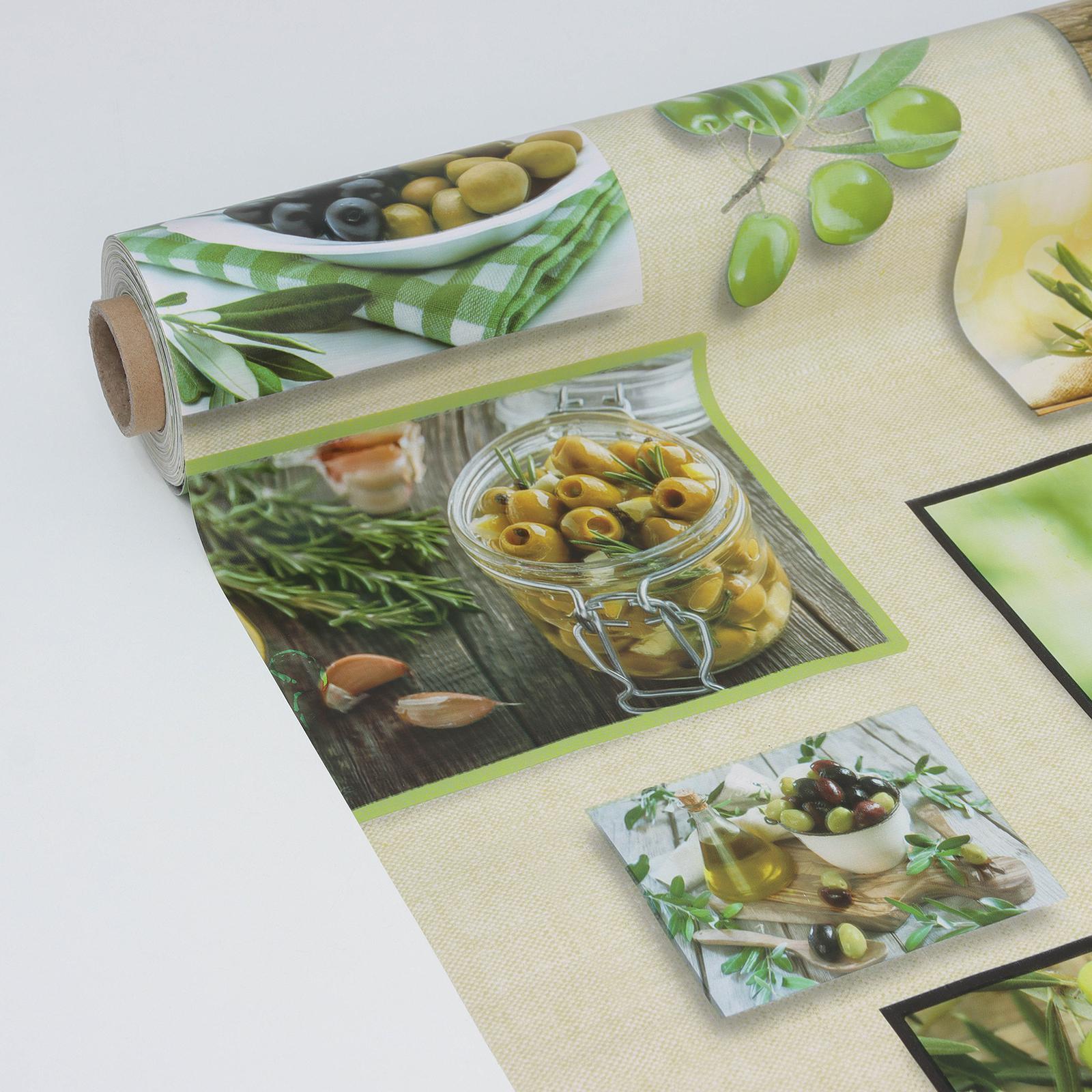 Клеёнка на стол на тканевой основе доляна «оливки», рулон 20 метров, ширина 137 см, общая толщина 0,22 мм, цвет зелёный