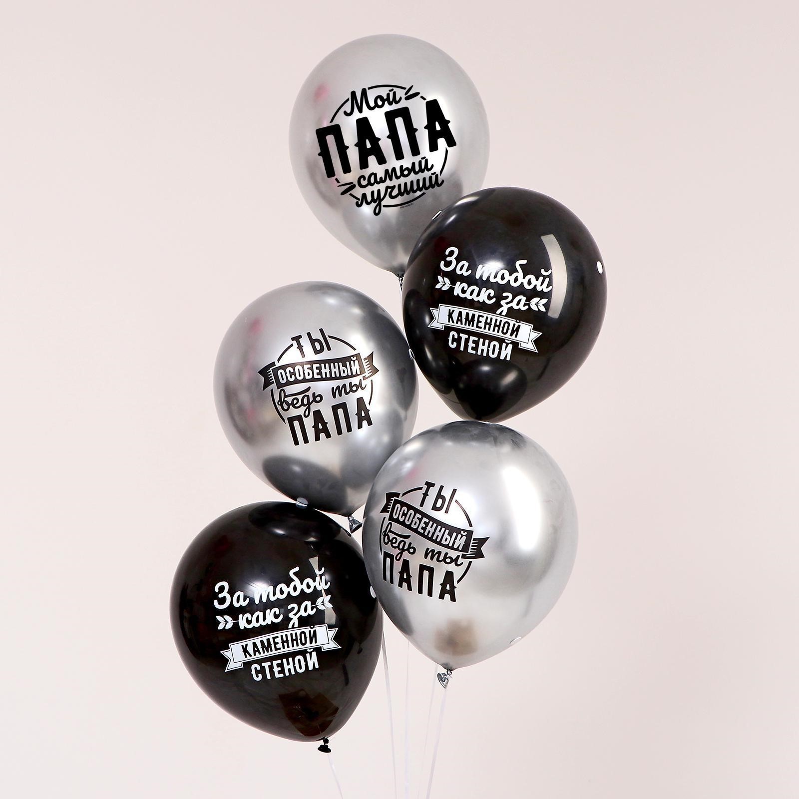 Набор:Да|Цвет:Серебристый|В наборе, шт.:5|Диаметр, дюйм:12|Рисунок:Да|Тематика праздника:День отца|Адресат:Папе|Материал:Латекс|Тематика рисунка:День отца|Вид шара:Классический|Надувка шара:Гелием|Надувка шара:Воздухом|Язык надписи:Русский|Оттенок:Хром|Оттенок:Пастель|Страна:Россия
