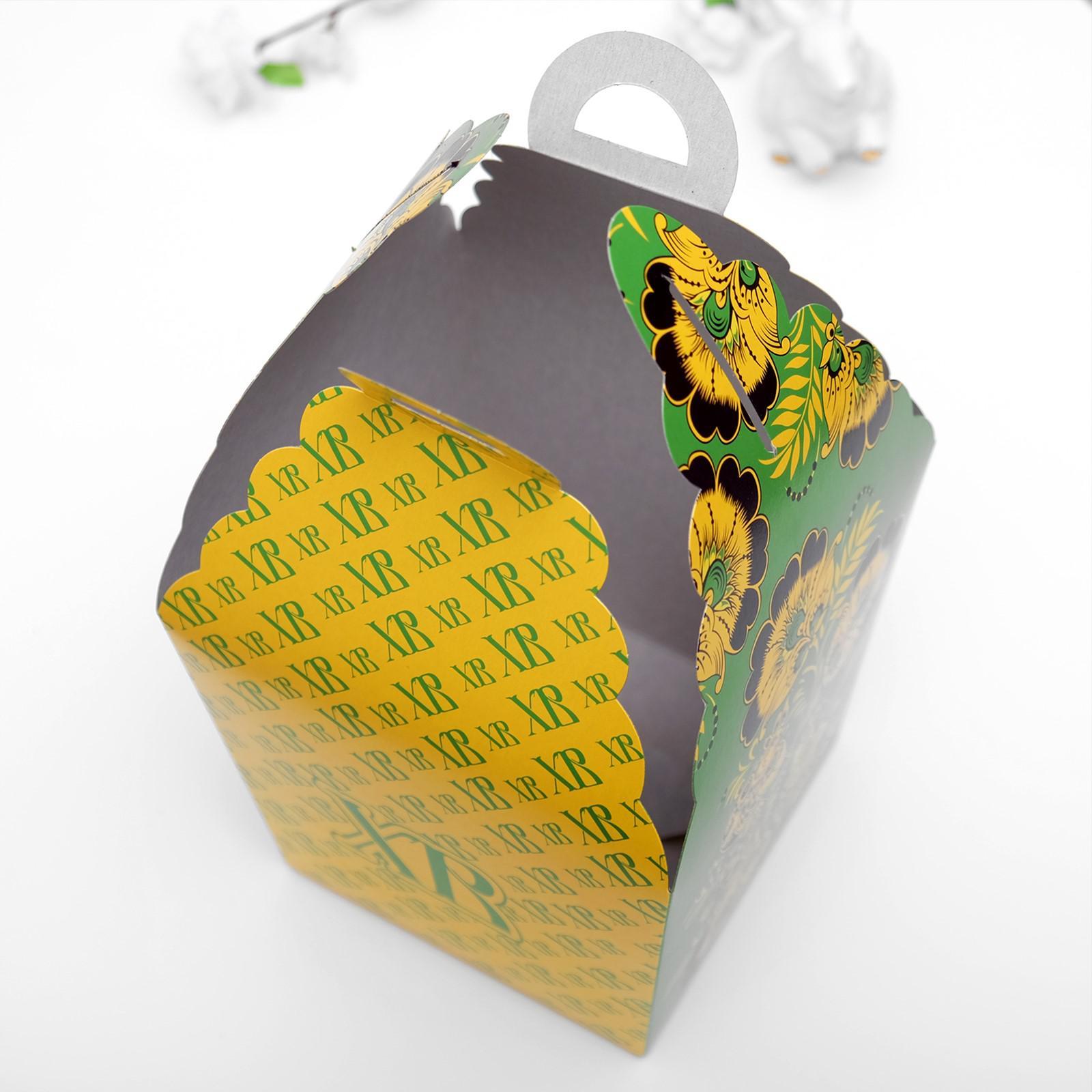 Вид упаковки:Универсальная|Цвет:Жёлтый|Цвет:Зелёный|Форма:Фигурная|Плотность, г/м :280|Тематика:Пасхальная|Тематика:Православная|Тематика:Праздник|Тематика:Надписи, цифры, буквы|Символ года:Нет|Тематика праздника:Пасха|Материал:Картон|Вид:Кондитерские коробки|Вид еды:Для десертов|Вид еды:Для куличей|Вид:Фигурные|Вид:Складные коробки|Размер:Большой (25-45 см)|Страна:Россия