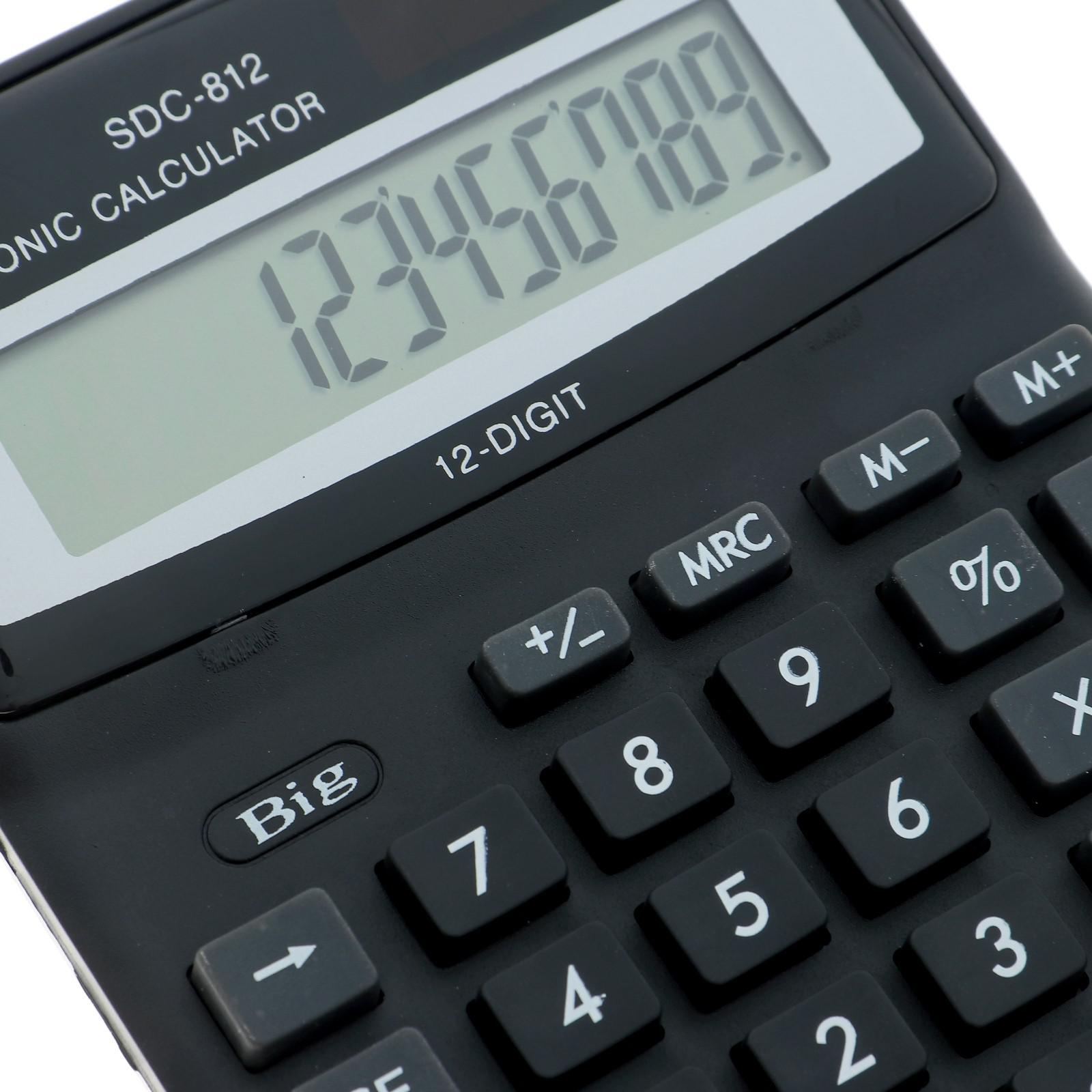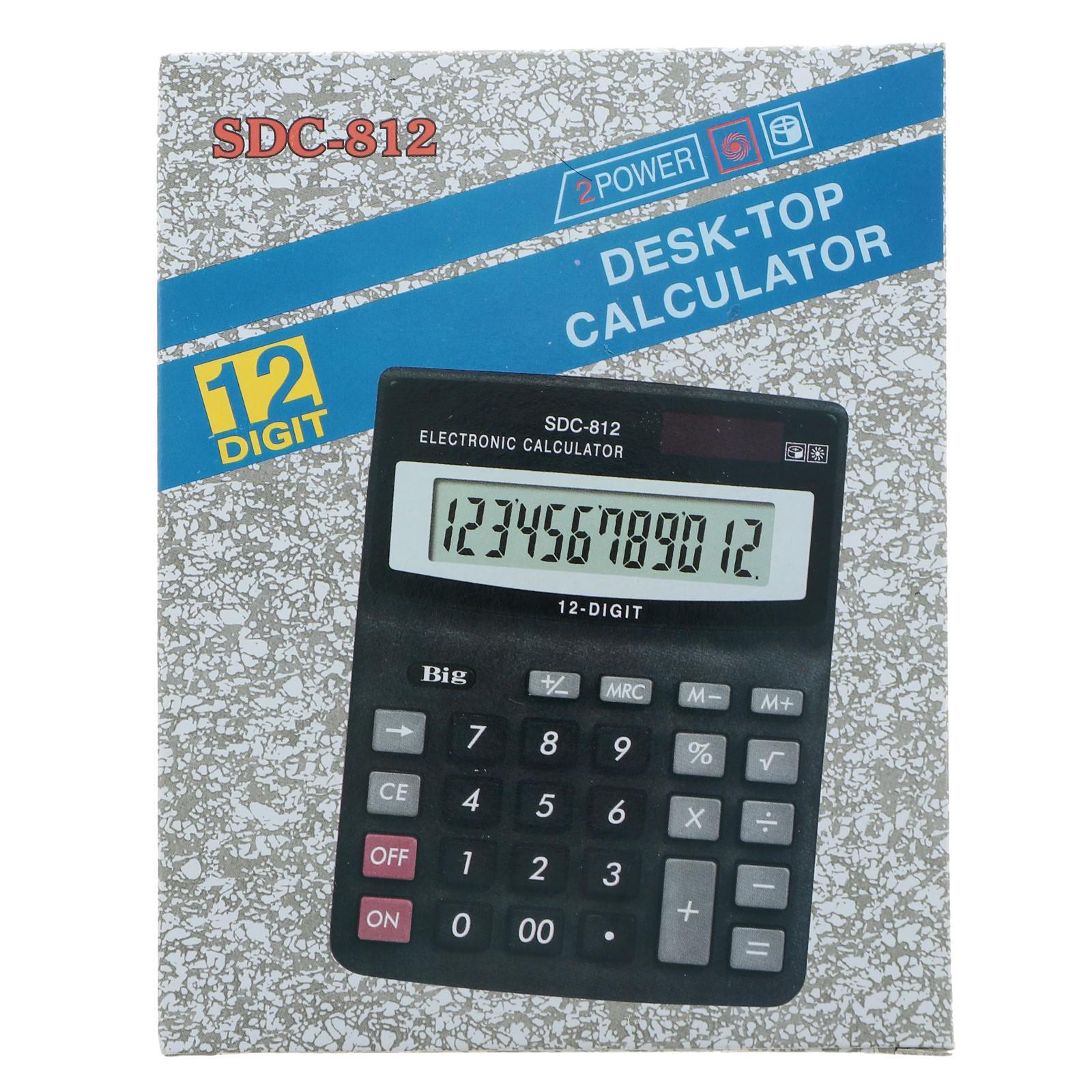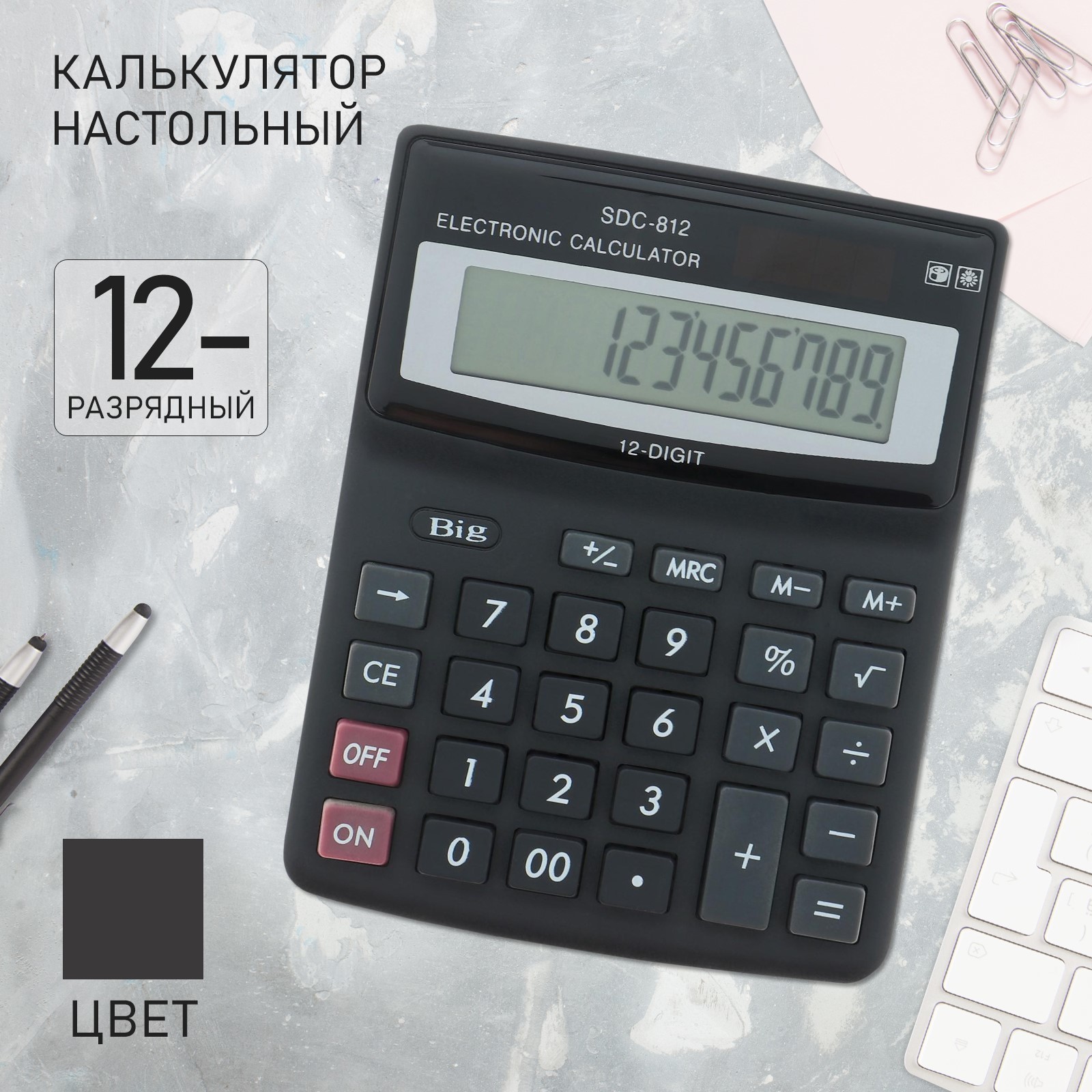 Калькулятор настольный, 12-разрядный, sdc - 812v. Настольный калькулятор. Большой яркий дисплей, устойчивый корпус с прорезиненными ножками и крупная клавиатура с цветной дифференциацией позволяют работать эффективнее с максимальным комфортом.Калькулятор производит все основные арифметические действия: вычисление с памятью, вычисление с процентами, возведение в степень, извлечение квадратного корня, коррекция последнего введенного значения.Большой двенадцатиразрядный дисплей отображает результаты вычислений с высокой точностью округления.Наличие функции отображения последнего нажатого знака (сложения, вычитания, умножения или деления) позволит не запутаться при длительных монотонных действиях.Калькулятор работает от батареек.Даже привычные вещи могут работать лучше. Закажите калькулятор в нашем интернет-магазине и убедитесь в этом сами. Цвет:Чёрный|Европодвес:Нет|Вид калькулятора:Настольный|Металлический корпус:Нет|Поворотный дисплей:Нет|Разрядность дисплея:12|Материал:Пластик|Материал:Металл|Функции:Коррекция вычислений (CHECK, CORRECT)|Особенности:Без особенностей|Вид батареек:Таблетки|Вид питания:Только от батарейки|Штрихкод на единице товара:Да|Страна:Китай  развернуть описание ▼
