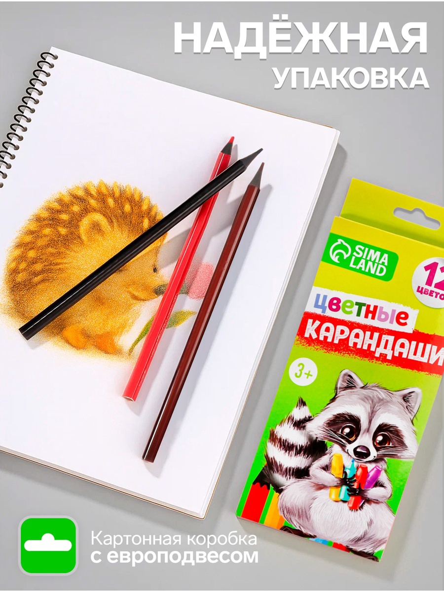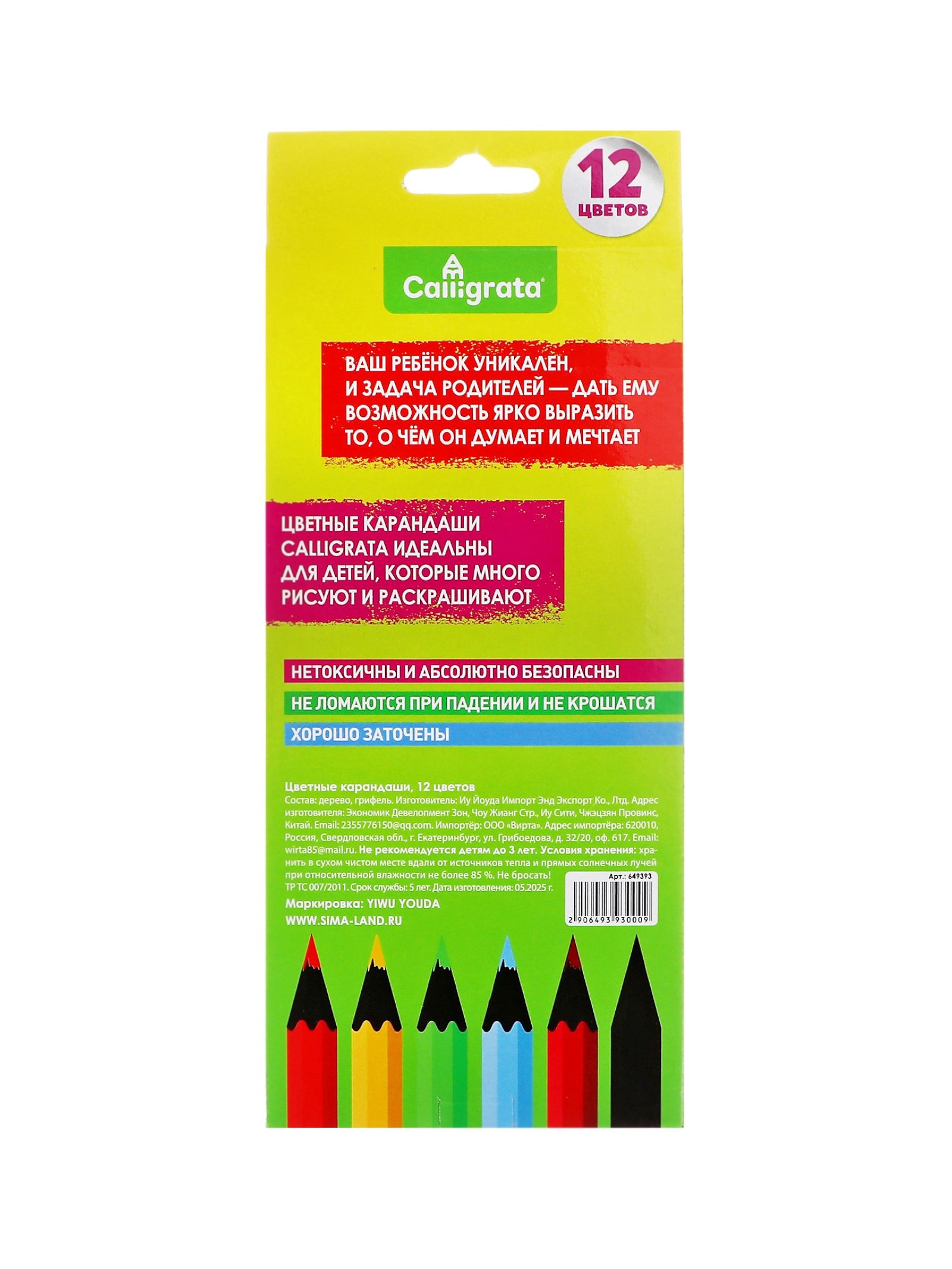 Карандаши Calligrata цветные заточенные, 12 цветов, в картонной коробке