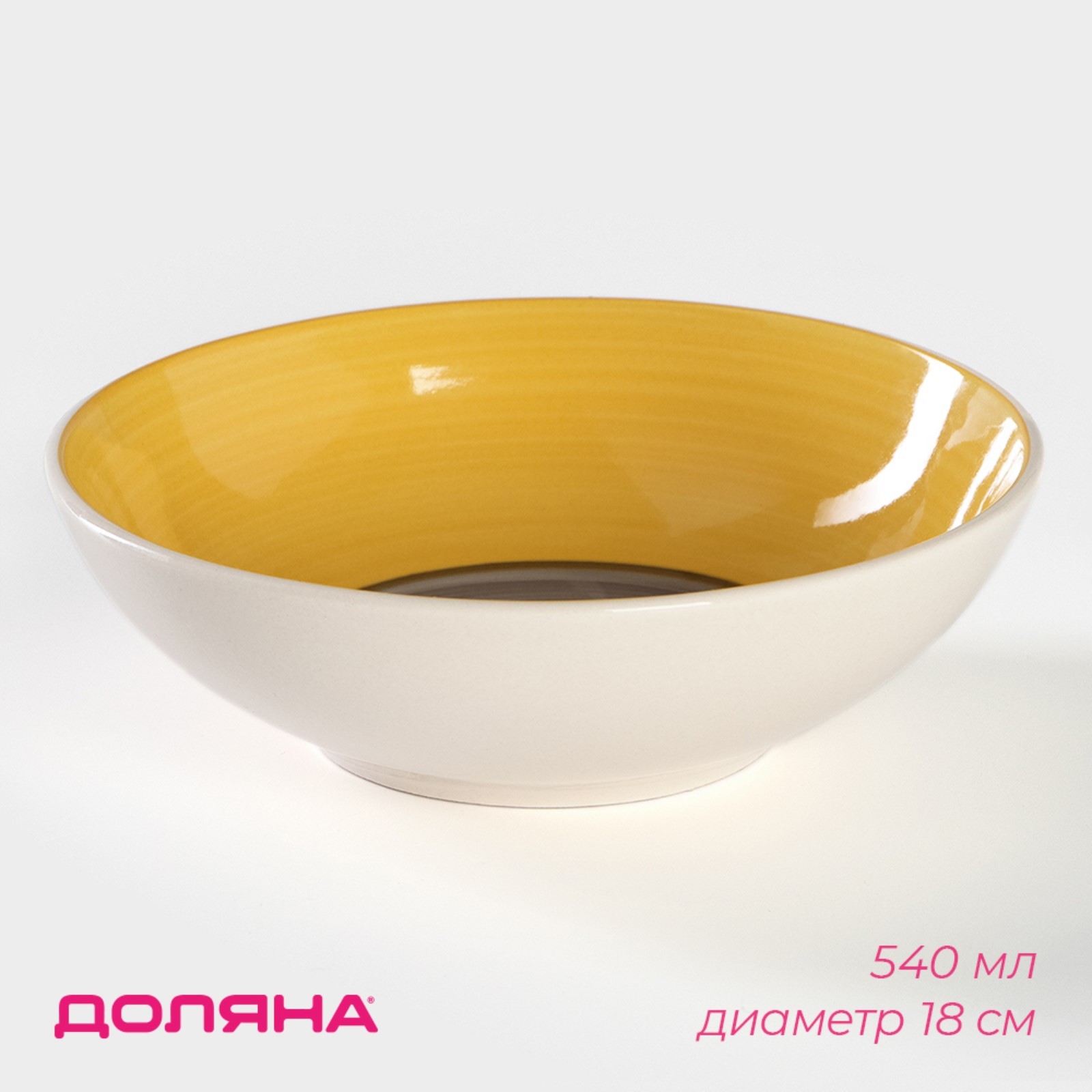 Тарелка керамическая глубокая доляна «бутон», 540 мл, D=18 см, цвет жёлтый
