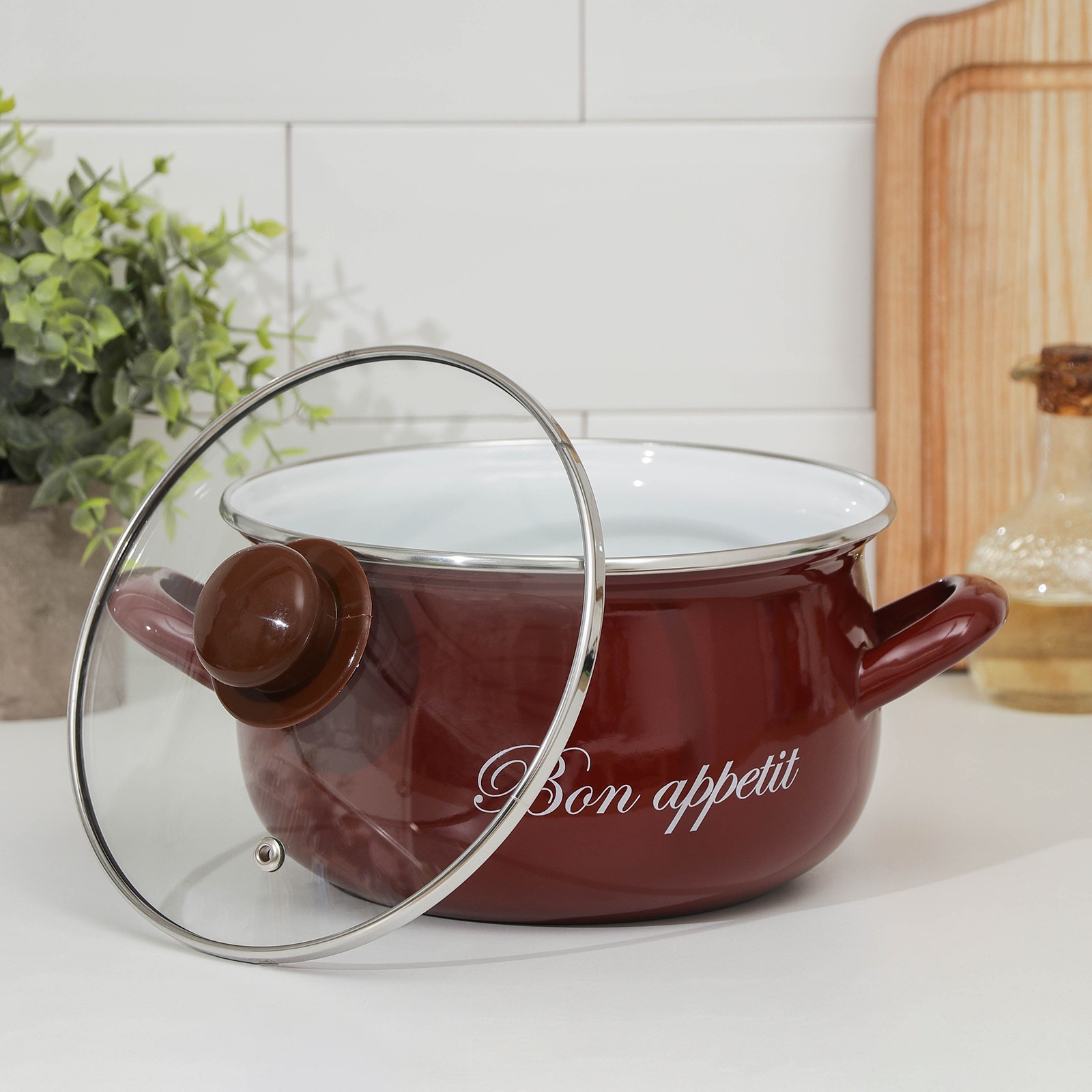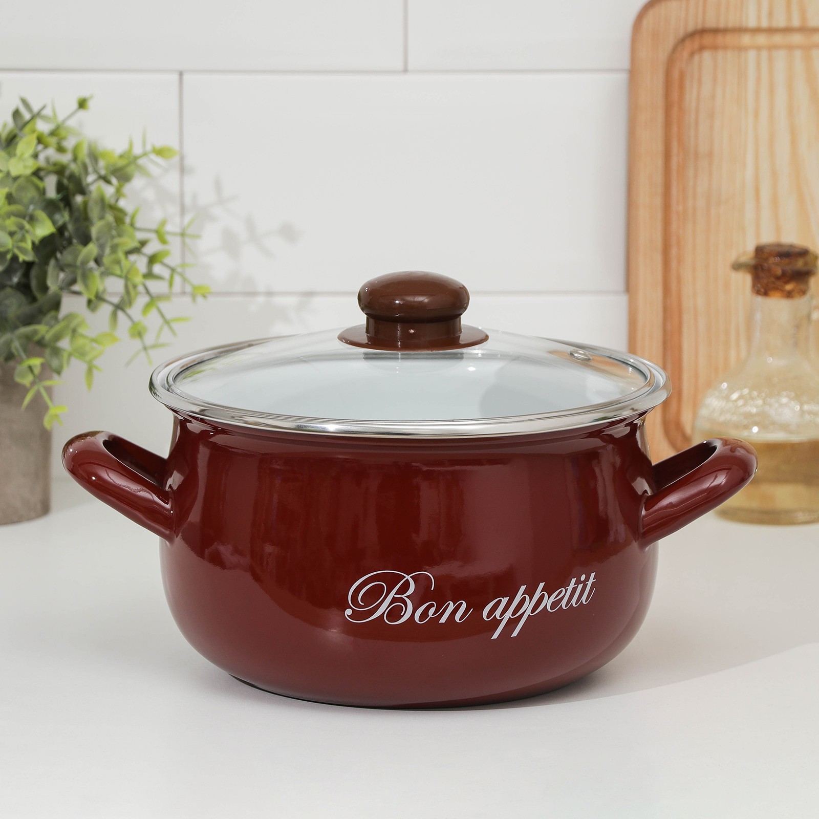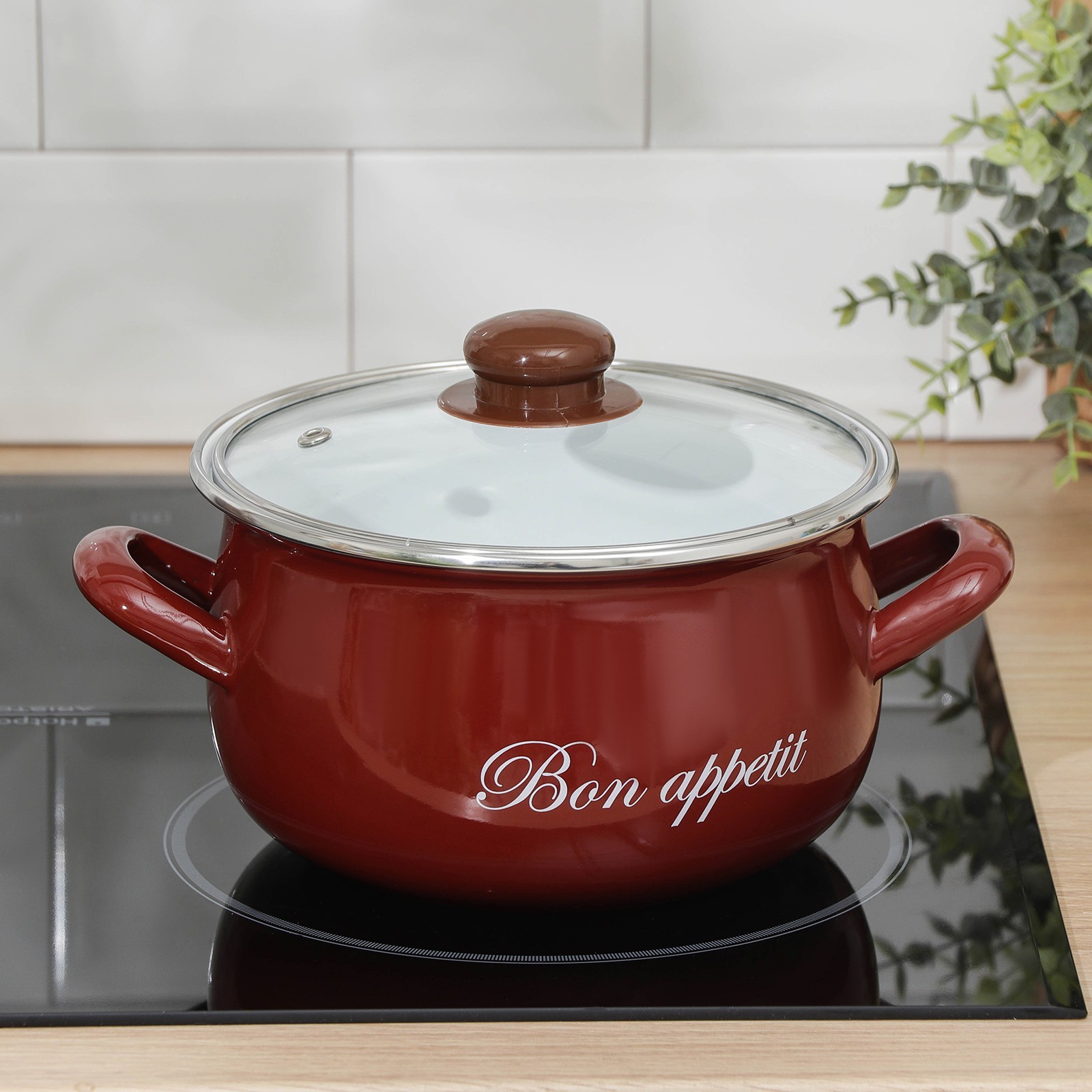 Кастрюля сферическая «бордо», 3,1 л, стеклянная крышка, индукция, цвет бордовый
