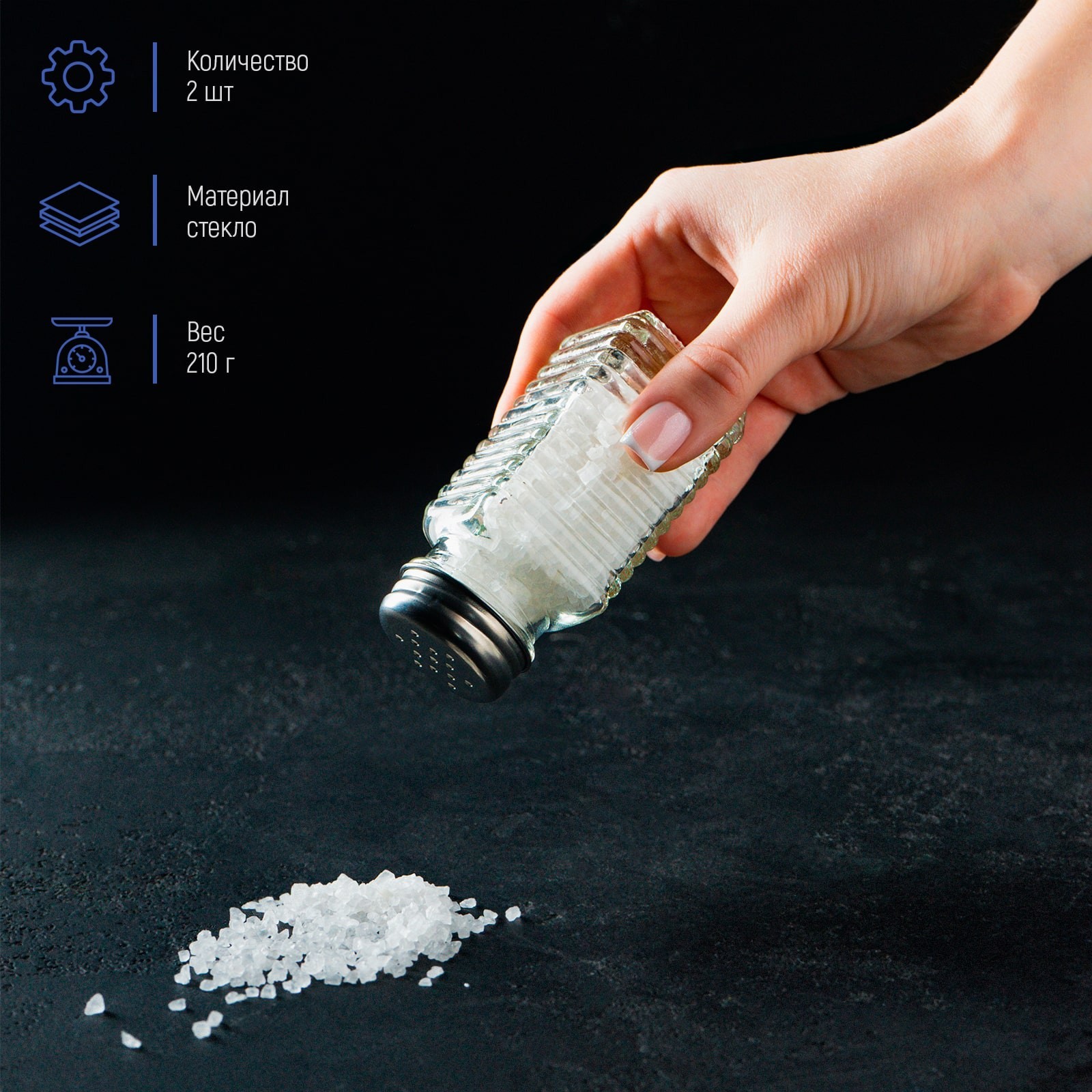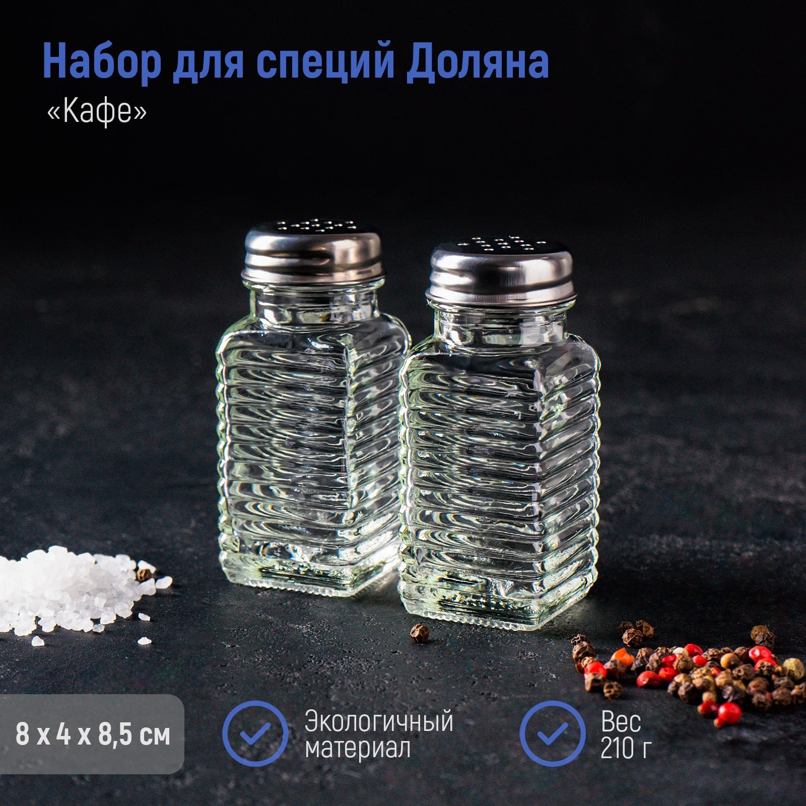 Набор для специй из стекла доляна «кафе», 2 предмета: солонка, перечница 100 мл