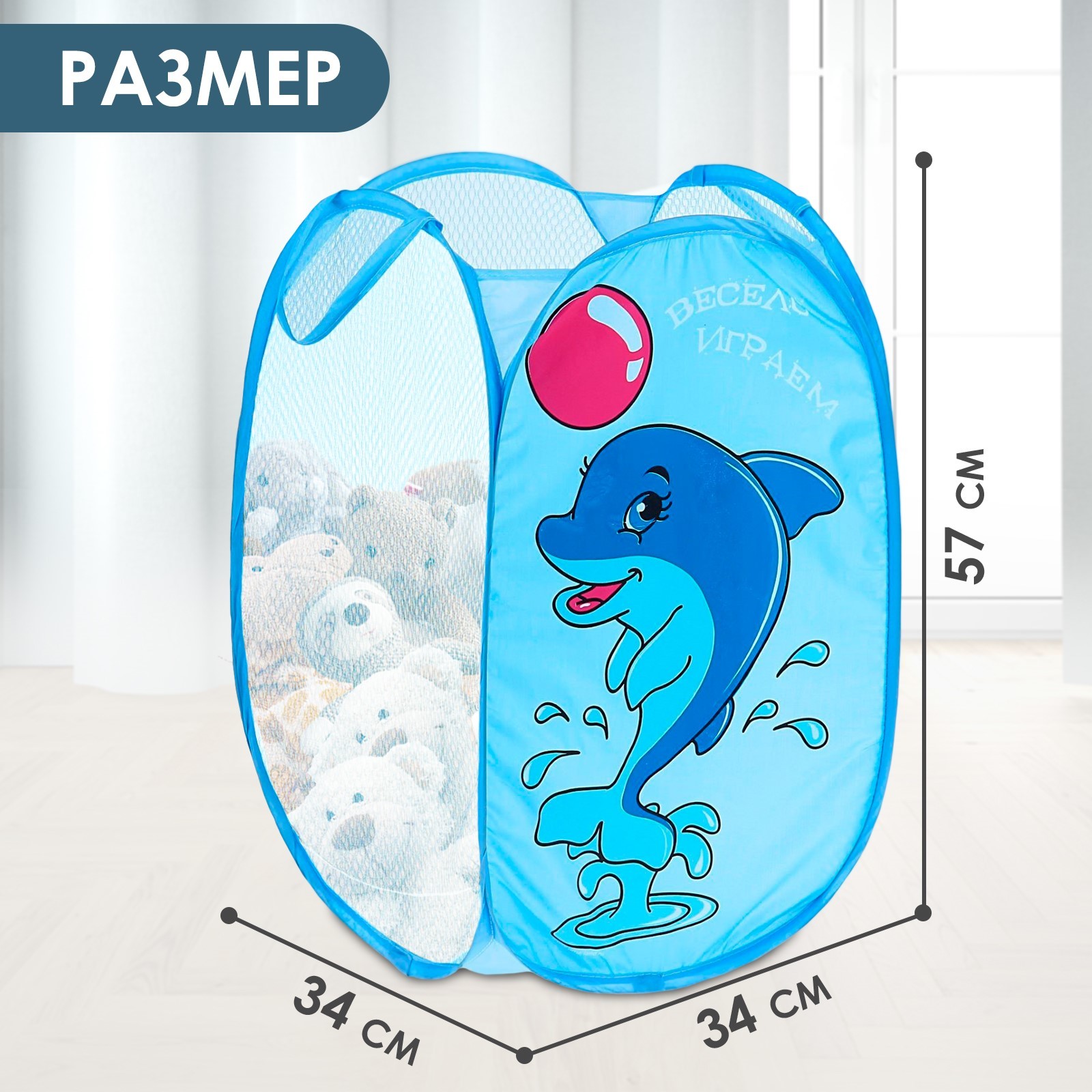 Корзина для хранения игрушек «весело играем» с ручками, 35х35х55 см