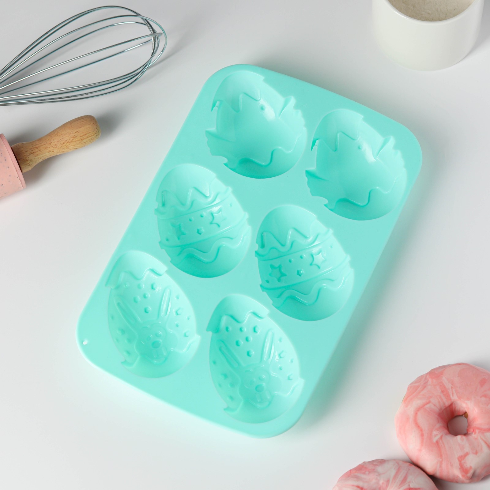 Форма силиконовая для выпечки доляна «пасха», 27x17 см, 6 ячеек, цвет мятный