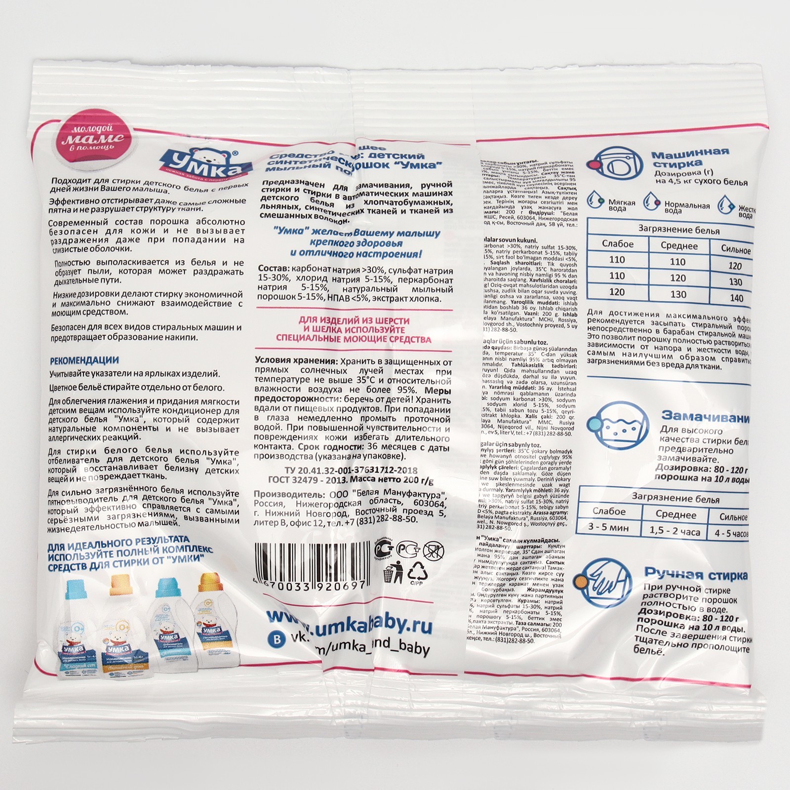 Стиральный порошок "умка", универсальный, для детского белья, 0+, 200 г