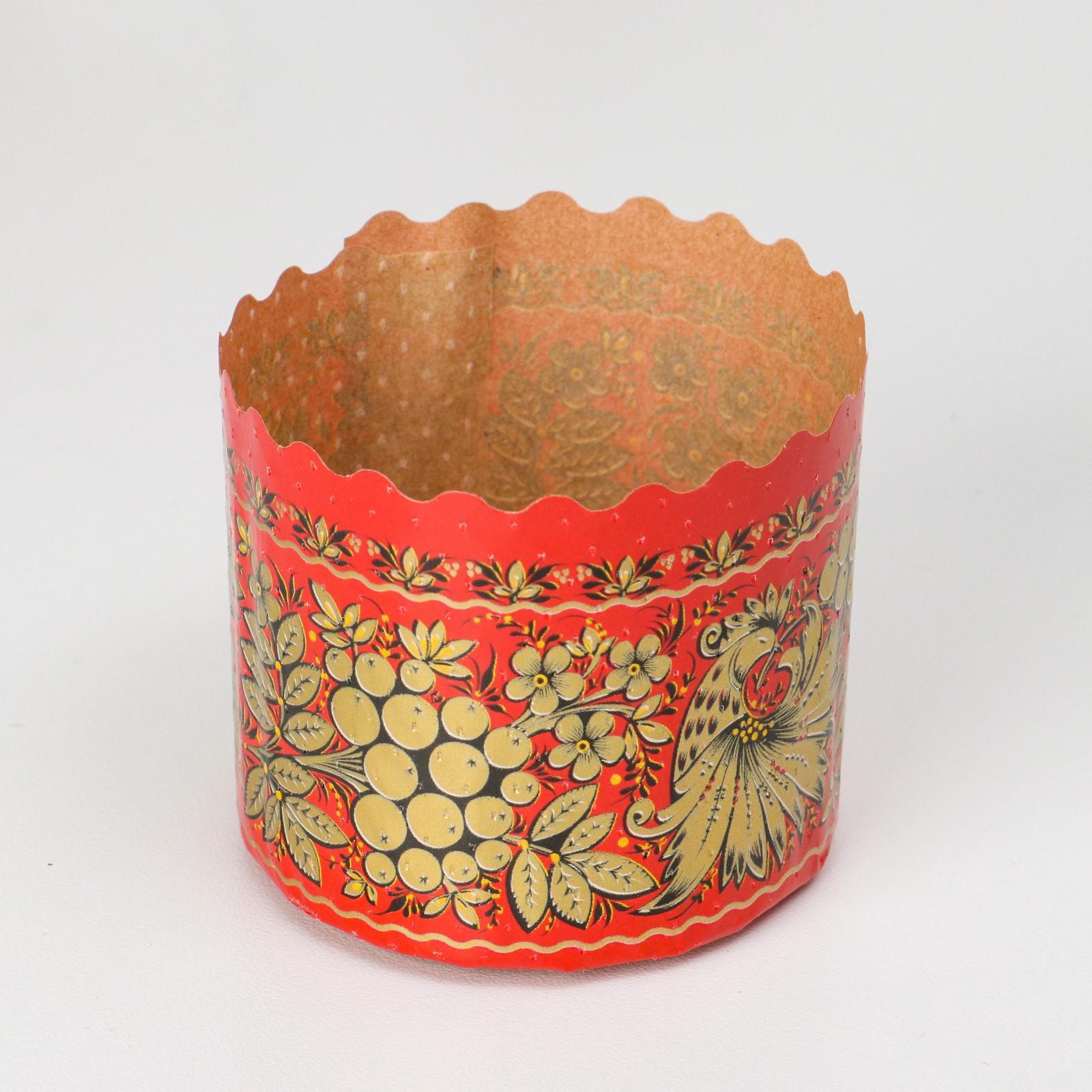 Форма бумажная для кулича "хохлома" 70 х 60 мм, микс. Цвет: Разноцветный Форма: Цилиндрическая parts count: 0 Фасовка, шт.: 20 tnved: 4823699000 Крышка: Нет Материал: Пищевая бумага Тип покрытия: Без покрытия Ячейки: Нет Тип формы: Для куличей Разъёмная форма: Нет Назначение: Для кулича, пасхи Температурное ограничение: Нет Использование в духовом шкафу: Да Можно мыть в посудомоечной машине: Нет Форма: Круг, шар, цилиндр  развернуть описание ▼