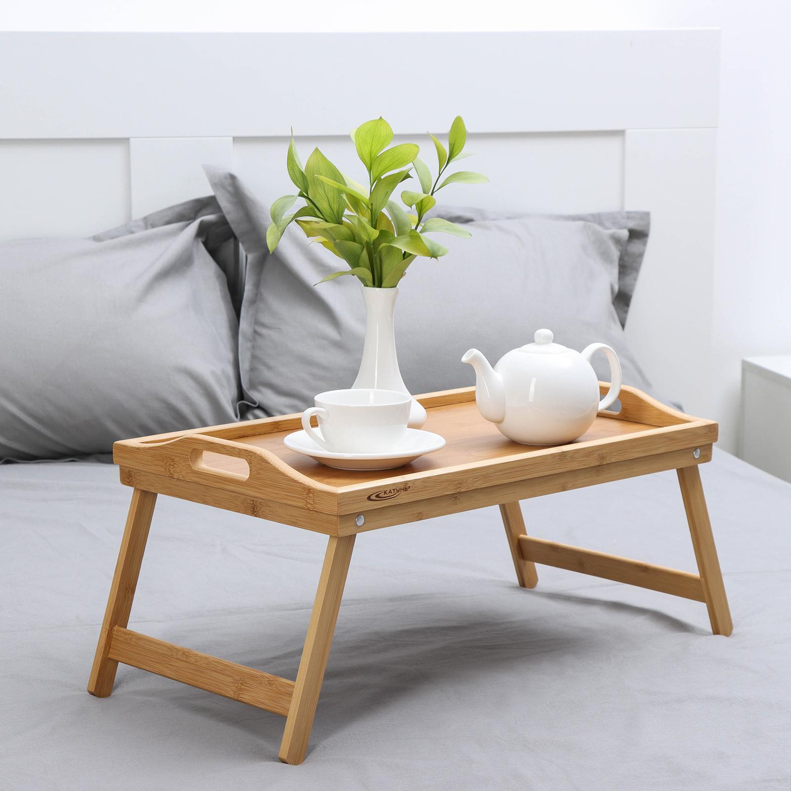 Столик-поднос для завтрака со складными ножками, 50x30x23 см, бамбук