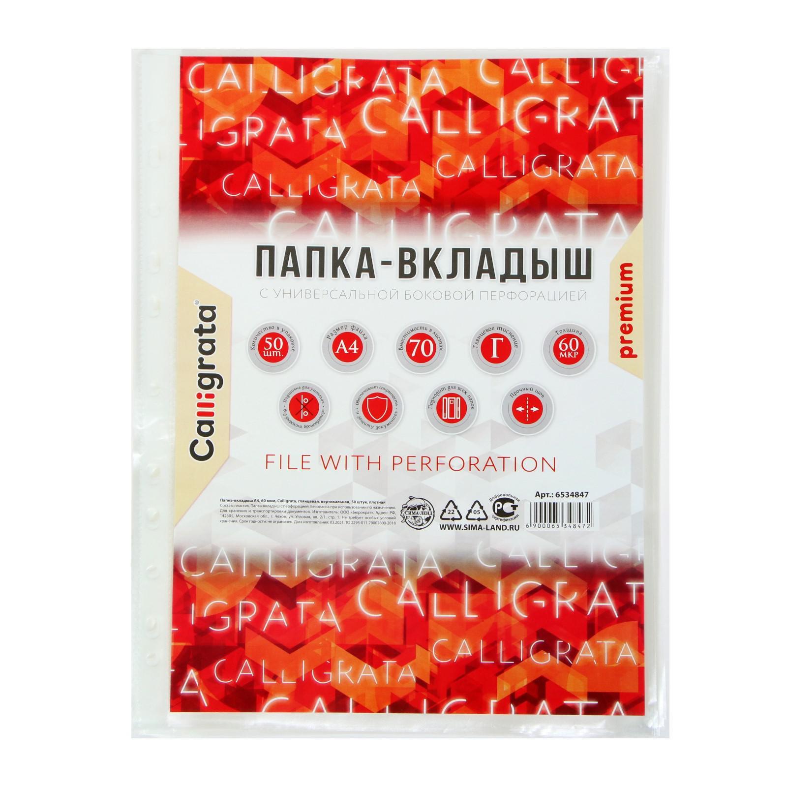 Файл-вкладыш а4, 60 мкм, calligrata, плотные, глянцевый, вертикальный, 50 штук.