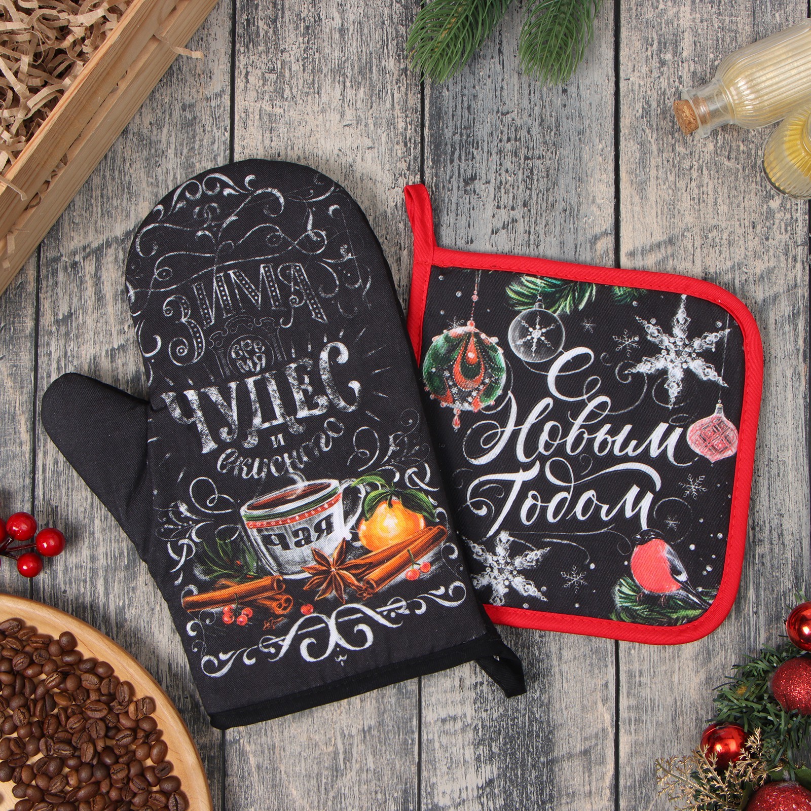 Набор кухонный «зима время чудес» варежка-прихватка 20х28см, прихватка 19х19см,100% хлопок