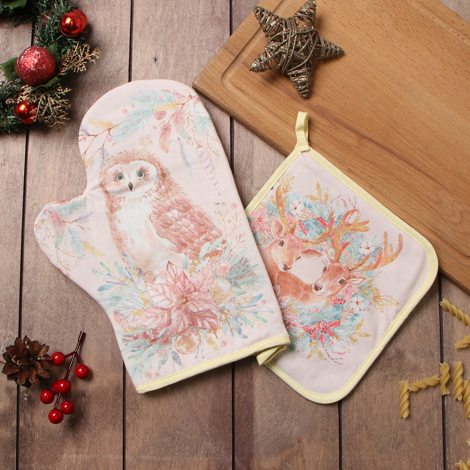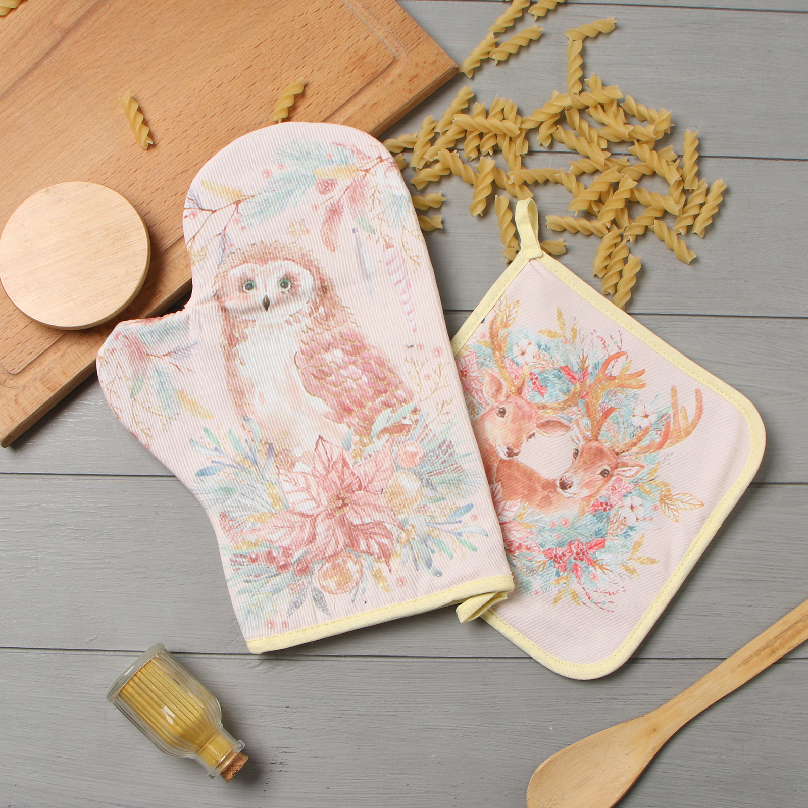 Набор кухонный «сказочные звери» варежка-прихватка 20х28см, прихватка 19х19см,100%хл