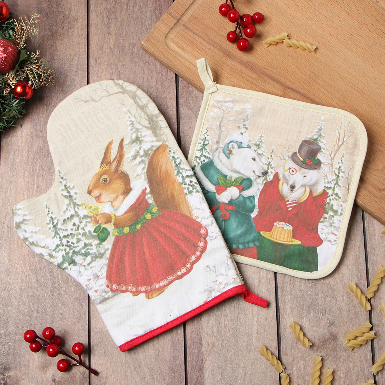 Набор кухонный «зимнее волшебство» варежка-прих.20х28см, прихватка 19х19,100% хл,ватин 250г/м2