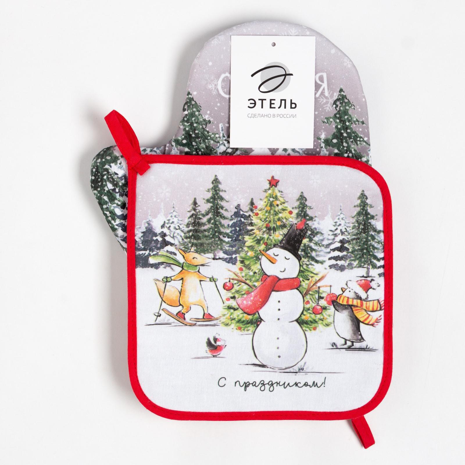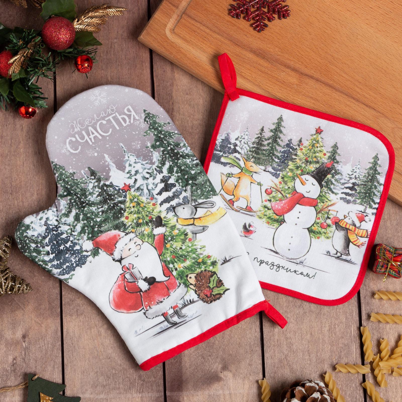Набор кухонный «желаю счастья» варежка-прихватка 20х28см, прихватка 19х19см, 100% хлопок