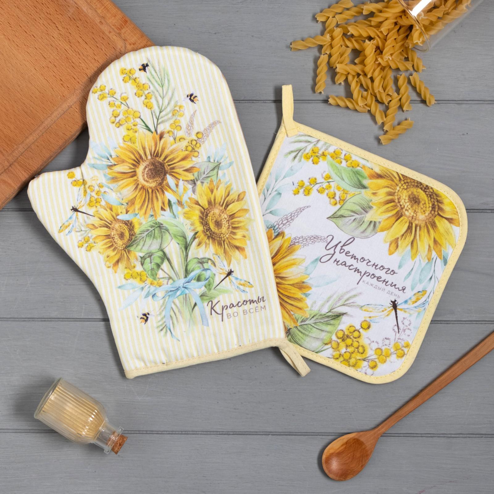 Набор кухонный «красоты во всем» варежка-прихватка 20х28см, прихватка 19х19см,100% хлопок
