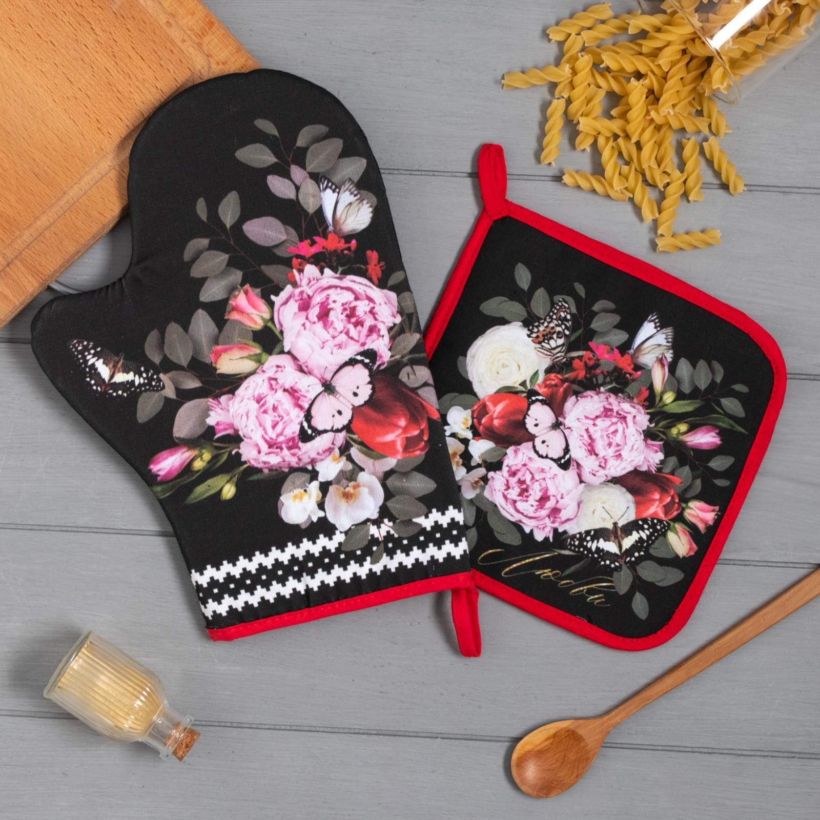 Набор кухонный «flowers» варежка-прихватка 20х28см, прихватка 19х19см,100% хл
