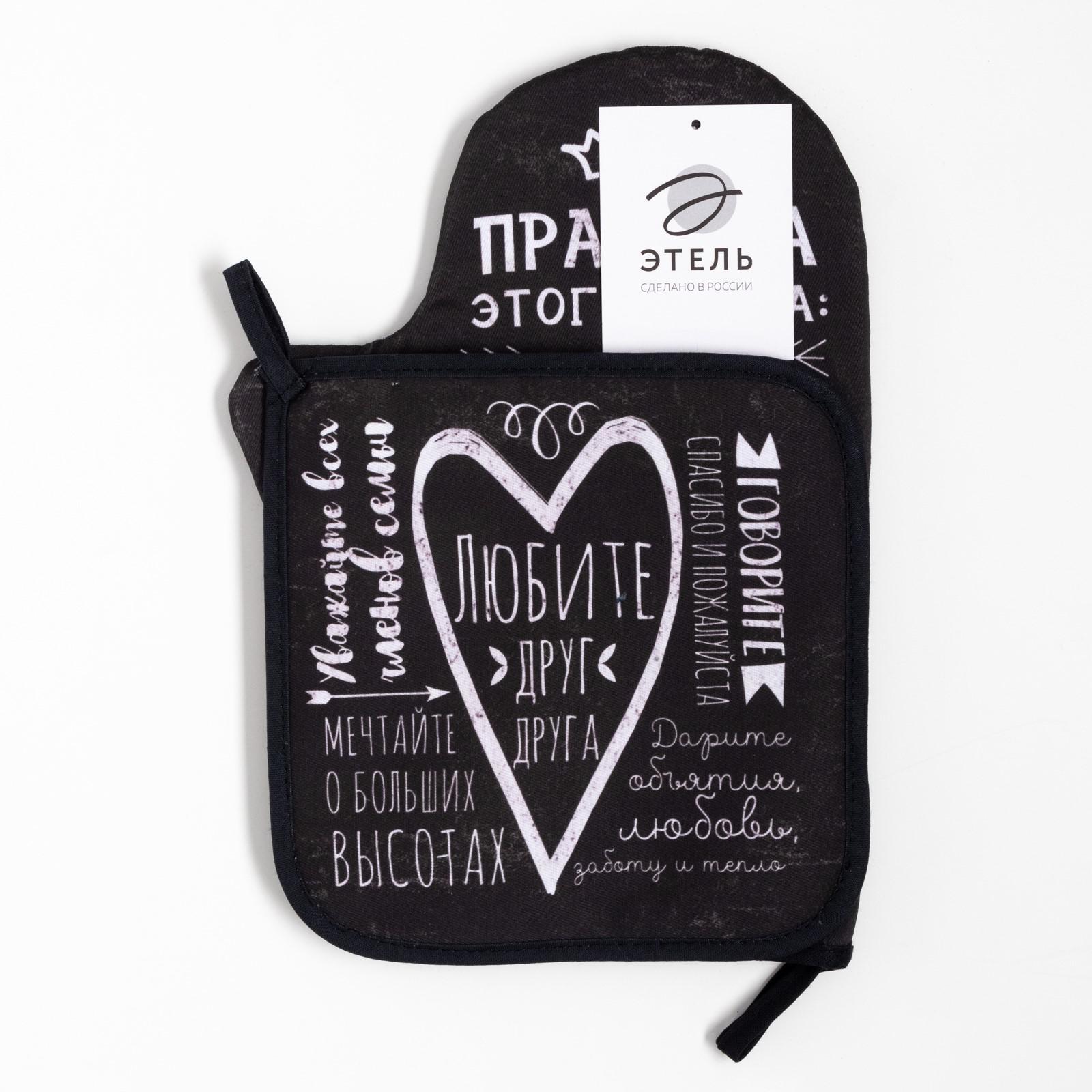 Набор кухонный «правила дома» варежка-прихватка 20х28см, прихватка 19х19см,100% хлопок