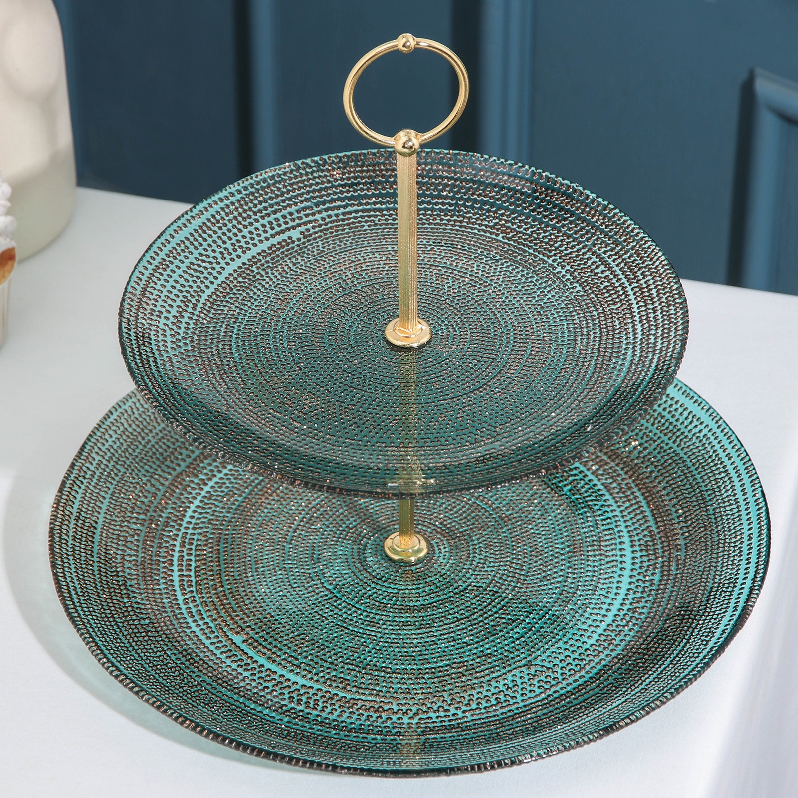 Блюдо 2-х ярусное Inspiration, D=21/28 см, цвет бирюзовый