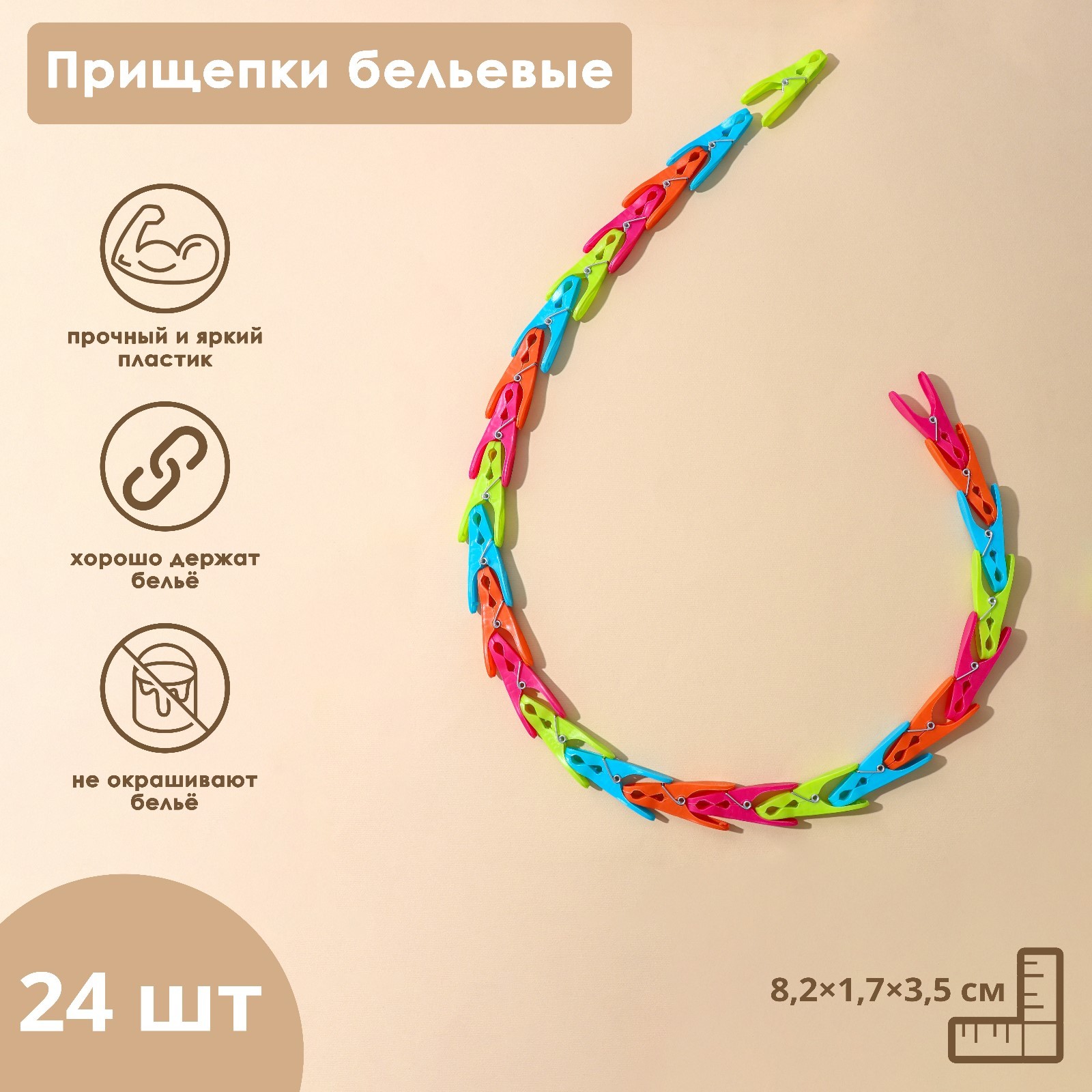Прищепки бельевые доляна «ложки», 8,2x1,7x3,5 см, 24 шт