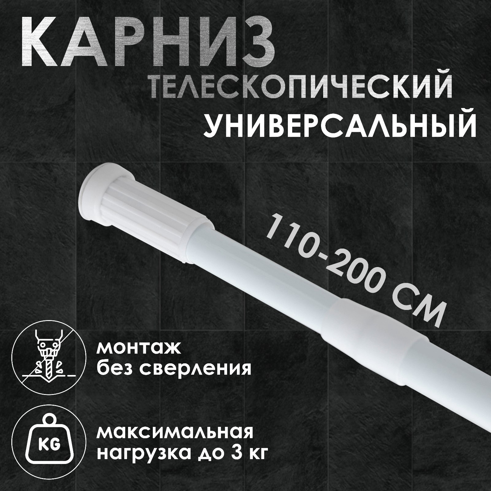 Карниз для ванной доляна, телескопический, D=3,2 см, 110-200 см, цвет белый