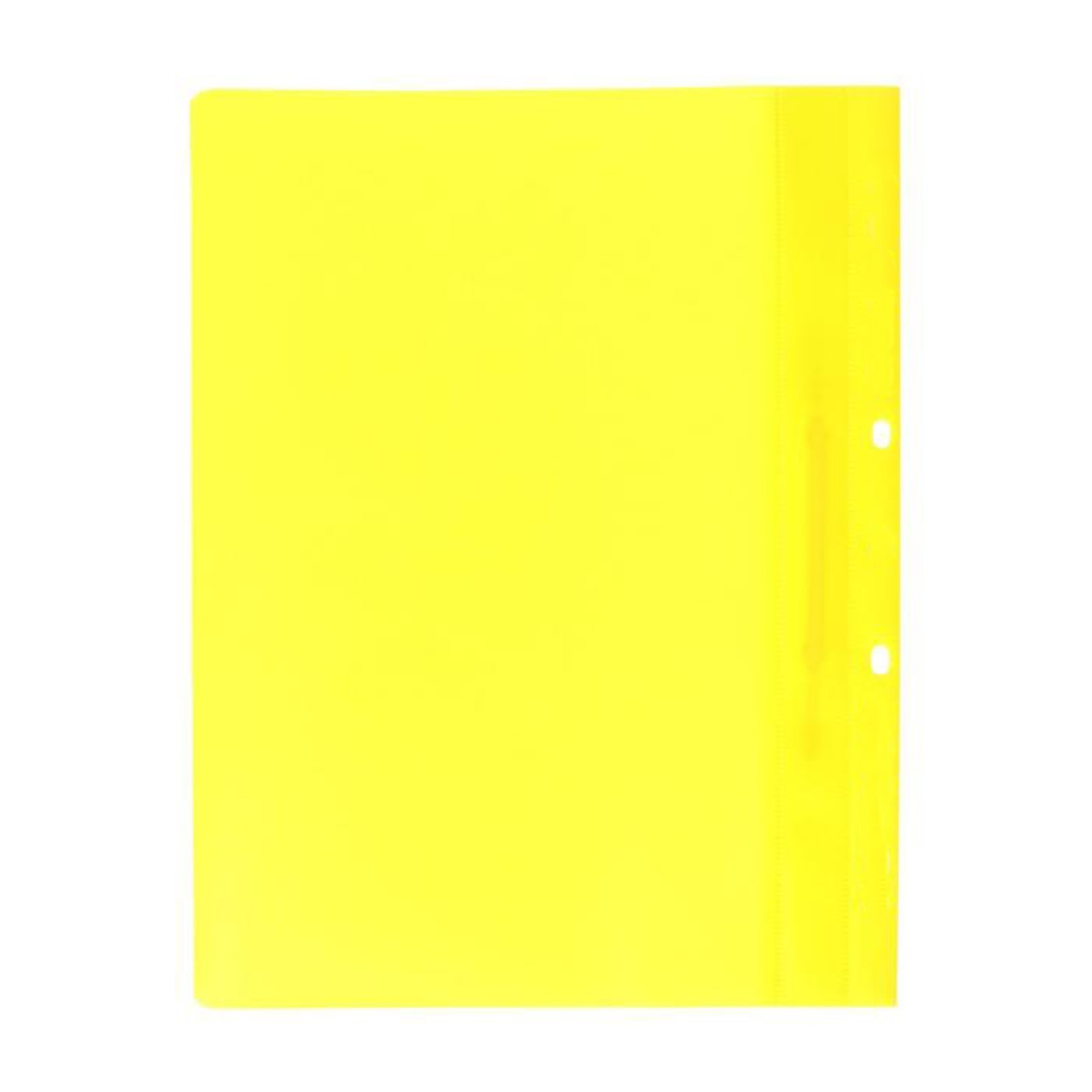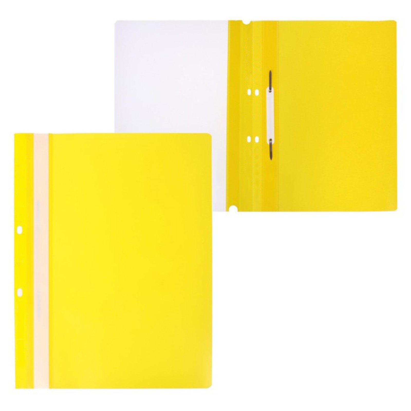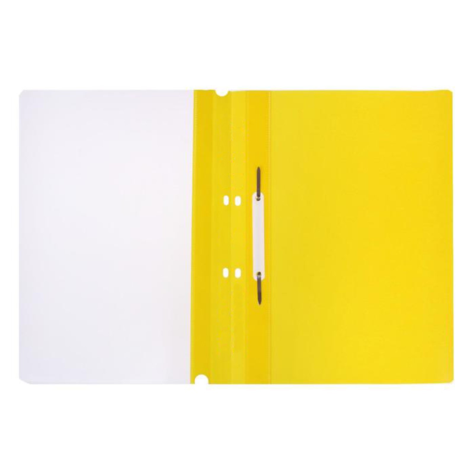 Папка-скоросшиватель calligrata, а4, 180 мкм, жёлтая, прозрачный верх, с перфорацией. Классический мягкий пластиковый скоросшиватель Calligrata предназначен для систематизации, хранения и транспортировки документов. Защищает бумаги от загрязнений, пыли, влаги и прочих механических повреждений. Фиксирует до 100 листов формата А4.Толщина пластика - 180 мкм.Предельно простой механизм подшивки: металлические усики и пластиковая планка для надежной фиксации документов.Мультиперфорация по краю обложки позволяет подшивать изделие в папки с любым механизмом.Скоросшиватель изготовлен из качественного полипропилена. Прозрачный верхний лист позволяет определить содержимое, не открывая скоросшиватель, который к тому же снабжен сменным пластиковым корешком, что дает возможность структурировать информацию.Благодаря насыщенному цвету обложки папка никогда не затеряется на полке и подойдет к вашему фирменному цвету.С помощью пластикового скоросшивателя Calligrata документы и ценные бумаги будут надежно защищены и содержаться в порядке!Тип этикетки: сменная.Верхний лист: прозрачный.Универсальная перфорация: да.Материал: пластик.Размеры: 310 х 230 мм.Особенности цвета:Однотонный|Цвет:Жёлтый|Формат:А4|Толщина, мкм:180|Особенности папок:Вертикальная|Вид:Скоросшиватель|Торцевой карман:Нет|Реестр Минпромторга:Да|Страна:Россия  развернуть описание ▼