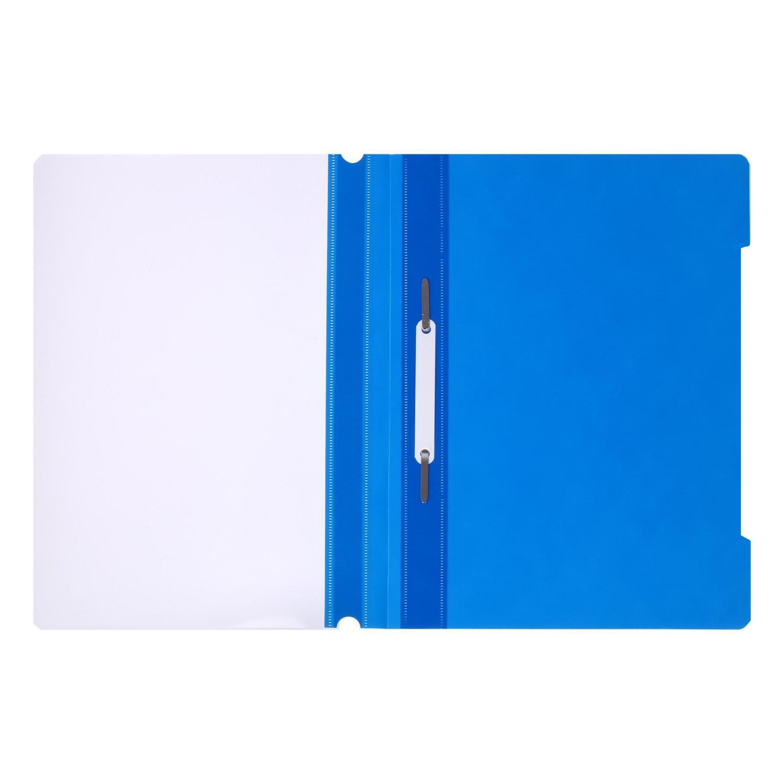 Фиксирует до 100 листов формата А4.Толщина пластика - 120 мкм (тонкий, эконом уровень).Предельно простой механизм подшивки: металлические усики и пластиковая планка для надежной фиксации документов.Скоросшиватель изготовлен из качественного полипропилена.Прозрачный верхний лист позволяет определить содержимое, не открывая скоросшиватель, который к тому же снабжен сменным пластиковым корешком, что дает возможность структурировать информацию. Благодаря гладкой фактуре и насыщенному цвету обложки папка никогда не затеряется на полке.Подходит под персонализацию: да.Вид товара: папка-скоросшиватель.Формат: A4.Материал: пластик.Размер: 310 х 230 мм.Внешняя перфорация: нет.Особенности цвета:Холодный|Цвет:Синий|Формат:А4|Толщина, мкм:120|Особенности папок:Вертикальная|Вид:Скоросшиватель|Торцевой карман:Нет|Реестр Минпромторга:Да|Страна:Россия