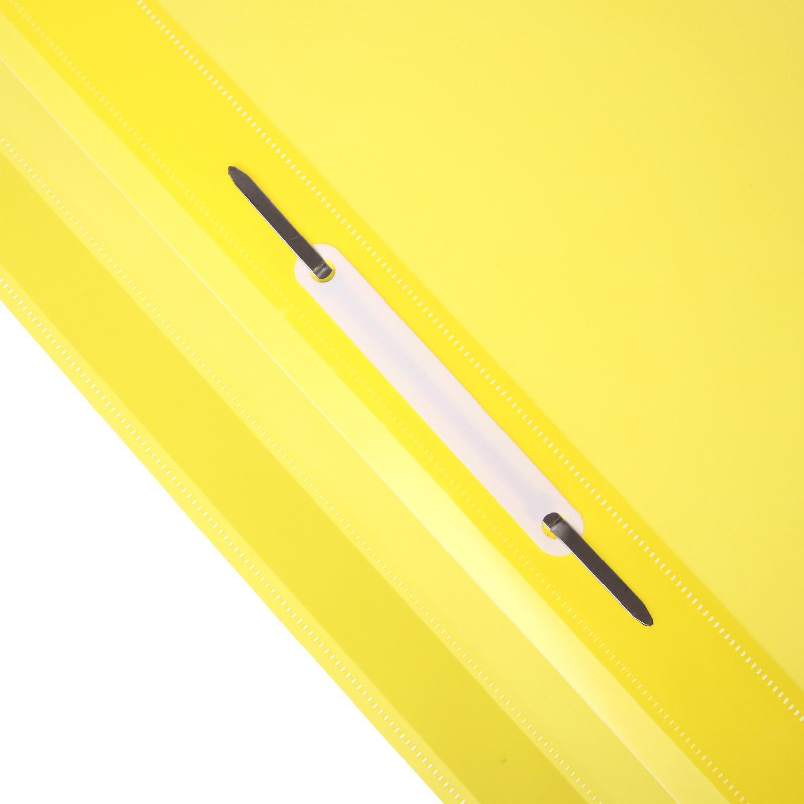 Папка-скоросшиватель calligrata, а4, 120 мкм, жёлтая, прозрачный верх. Классический мягкий пластиковый скоросшиватель Calligrata защищает бумаги от загрязнений, пыли, влаги и прочих механических повреждений. Поможет всегда содержать документы в порядке. Фиксирует до 100 листов формата А4.Толщина пластика - 120 мкм (тонкий, эконом уровень).Предельно простой механизм подшивки: металлические усики и пластиковая планка для надежной фиксации документов.Скоросшиватель изготовлен из качественного полипропилена.Прозрачный верхний лист позволяет определить содержимое, не открывая скоросшиватель, который к тому же снабжен сменным пластиковым корешком, что дает возможность структурировать информацию. Благодаря гладкой фактуре и насыщенному цвету обложки папка никогда не затеряется на полке.Подходит под персонализацию: да.Вид товара: папка-скоросшиватель.Формат: A4.Материал: пластик.Размер: 310 х 230 мм.Внешняя перфорация: нет.Цвет:Жёлтый|Формат:А4|Толщина, мкм:120|Особенности папок:Вертикальная|Вид:Скоросшиватель|Торцевой карман:Нет|Реестр Минпромторга:Да|Страна:Россия  развернуть описание ▼