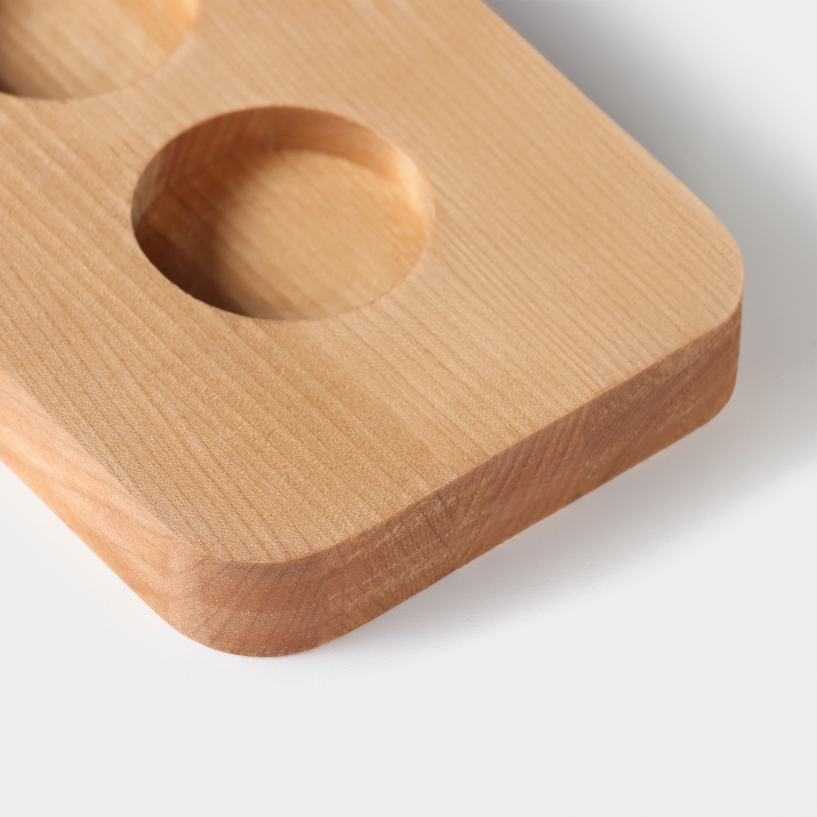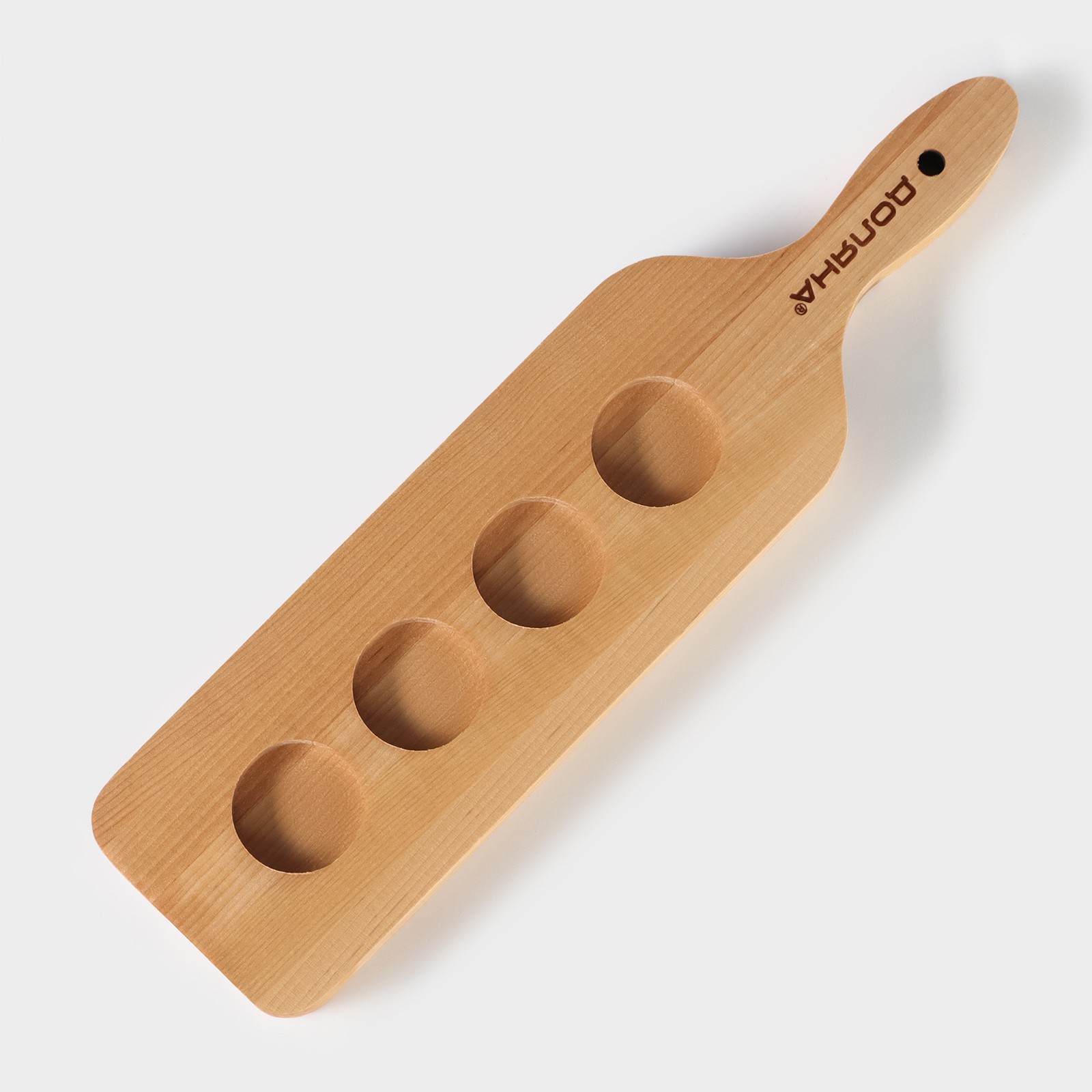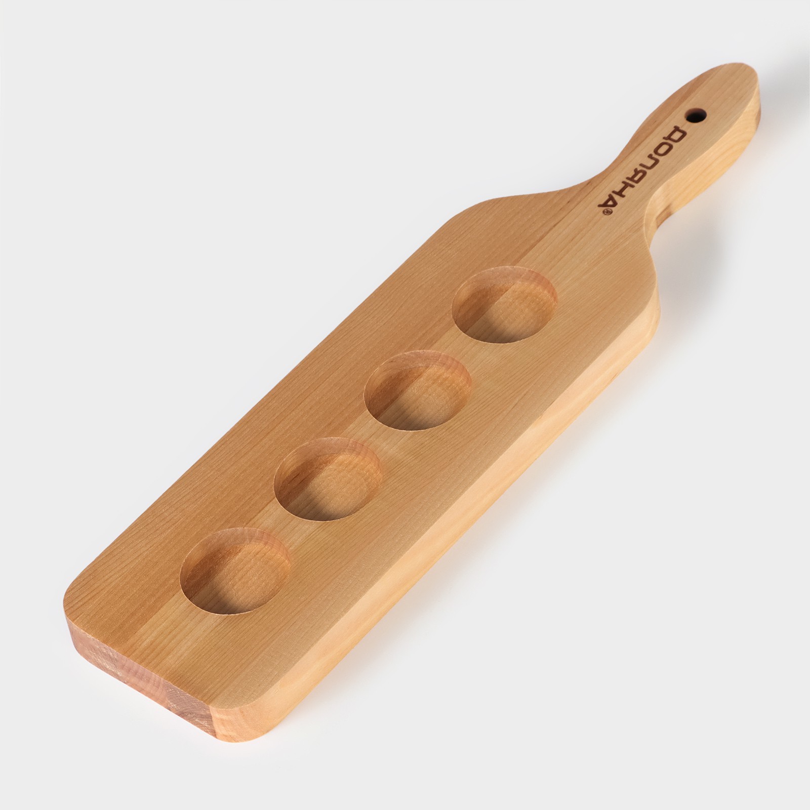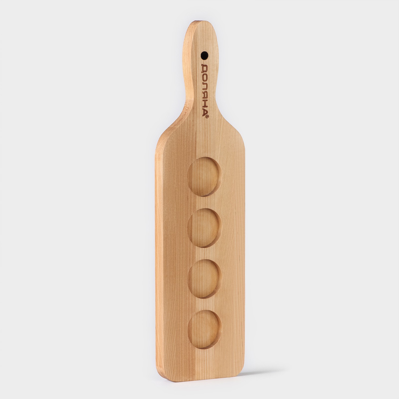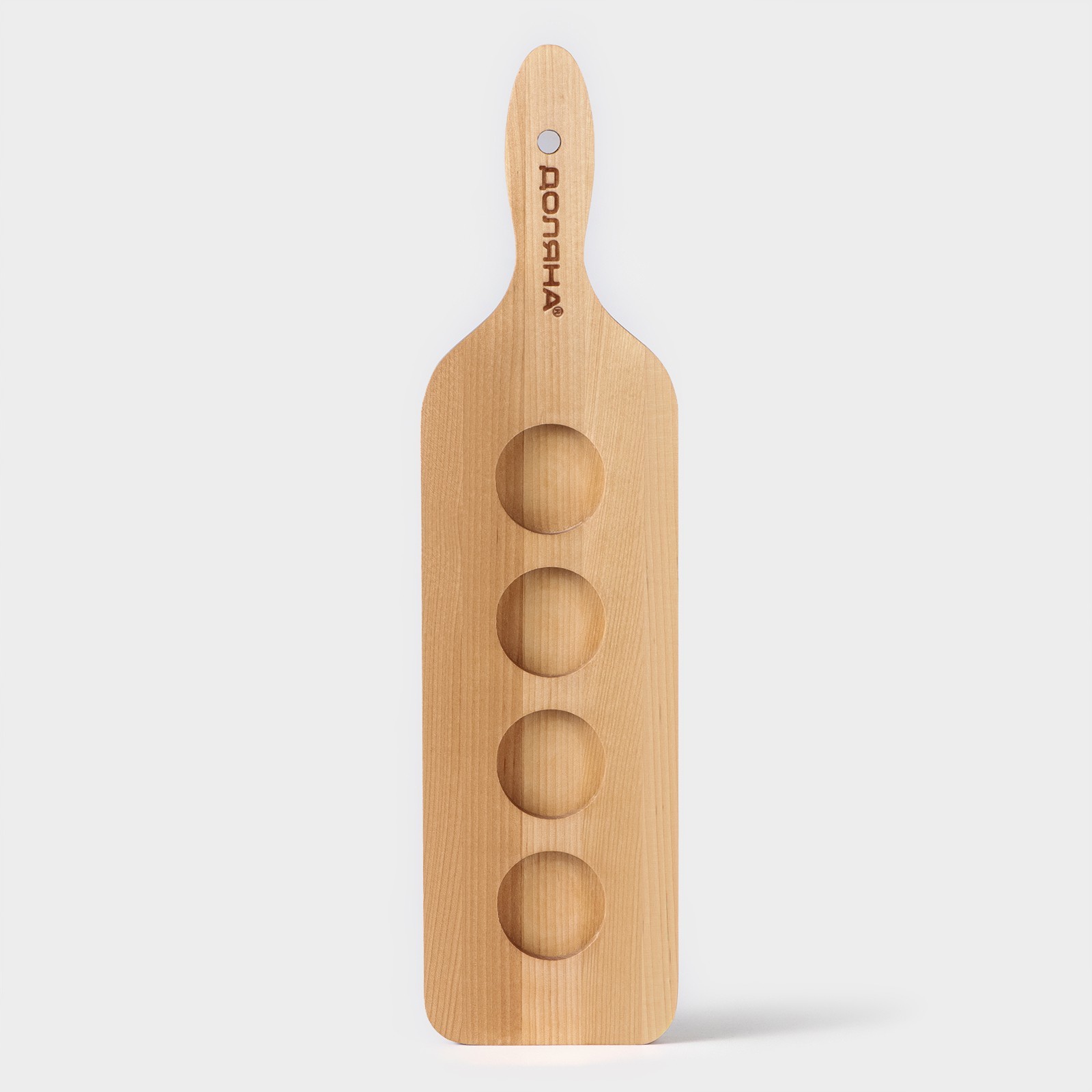 Доска для подачи с ручкой, 35x9x1,8 см, на 4 шота, диаметр ячеек 3,9 см,с пропиткой, берёза