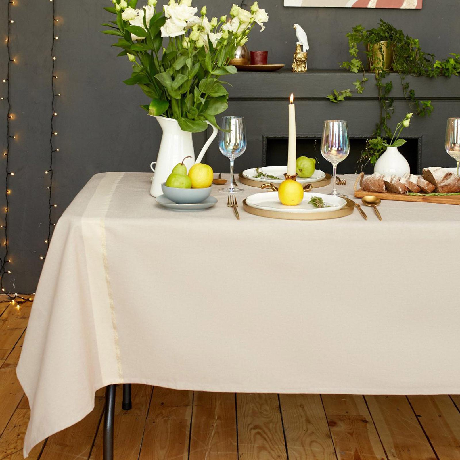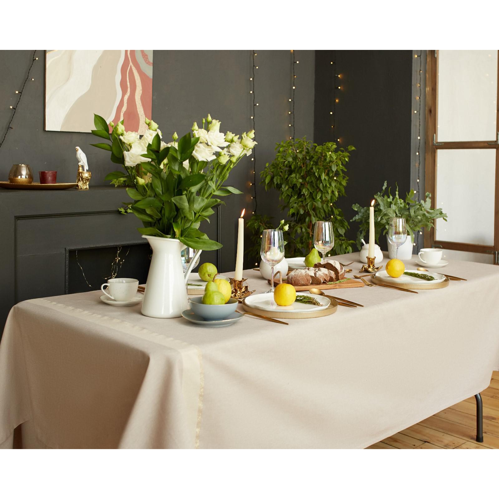 Скатерть "этель" 110х165 см ± 5см, цвет кофейный с золотой нитью, 100% хлопок, 163 г/м2