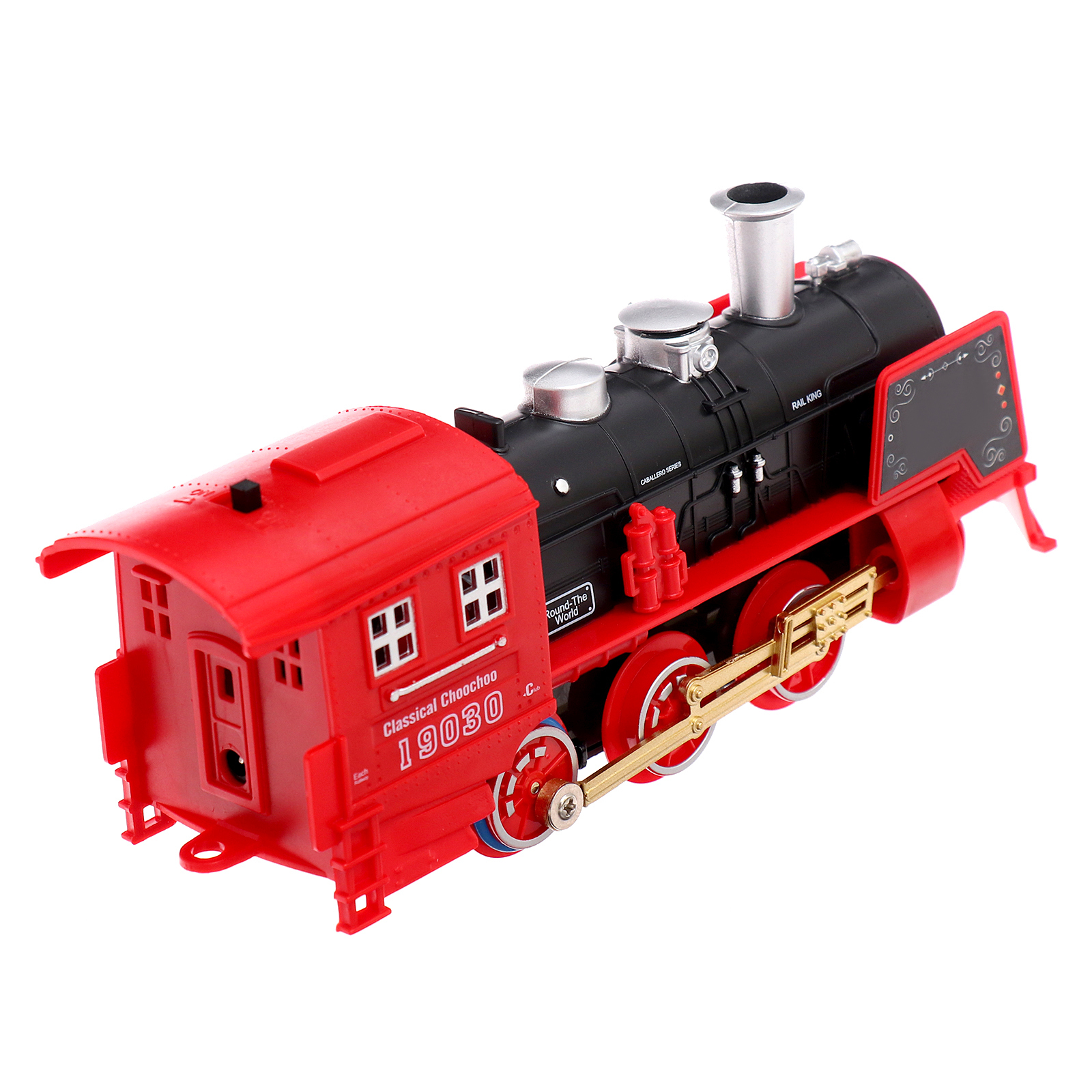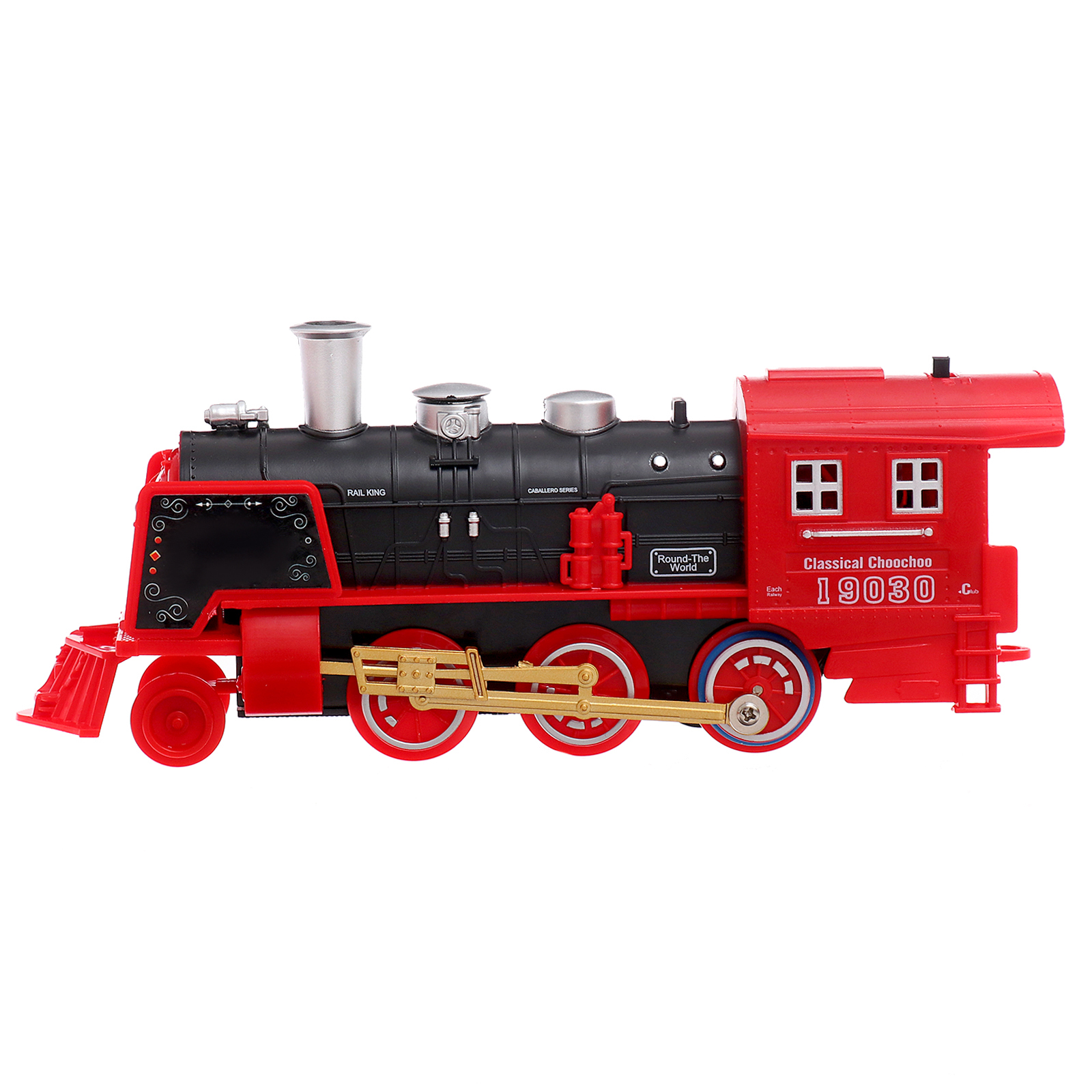 Железная дорога радиоуправляемая «с новым годом», эффект дыма, 3+. Вперёд — навстречу приключениям! Новогодняя железная дорога подарит ребёнку ощущение предстоящего праздника. Его ждёт увлекательное волшебное путешествие. Особенности железной дороги Набор комбинируется с другими железными дорогами «Автоград»: соединяйте рельсы друг с другом, чтобы построить длинный путь и запустить по нему поезд.Ширина дороги — 5 см.Ширина между шпалами — 2,8 см.Состав поезда (батарейки вставляются в вагон с углём): 58 5 9 см.Декорации входят в комплект (картон).Работает от 6 батареек типоразмера AA, в комплект не входят.Увлекательно и полезно Игры с железной дорогой будут способствовать развитию эмоционального и визуального восприятия, воображения и творческого мышления ребёнка. Рекомендовано детям от 3 лет. Тип питания:От батареек|Для кого:Унисекс|Возраст:От 3 лет|Количество вагонов:3|Количество батареек:6|Вид упаковки:Коробка картонная с PVC|Тематика праздника:Новый год|Материал:Пластик|Дополнительные функции:Дымовые эффекты|Дополнительные функции:Звуковые эффекты|Дополнительные функции:Светящаяся|Типоразмер батареек:AA (LR6)|Тип управления:Радиоуправление|Вид поезда:Классический|Особенности:Окружение|Материал путей:Пластик|Среда перемещения транспорта:Наземный транспорт|Тематика назначения:Пассажирский транспорт|Страна:Китай  развернуть описание ▼