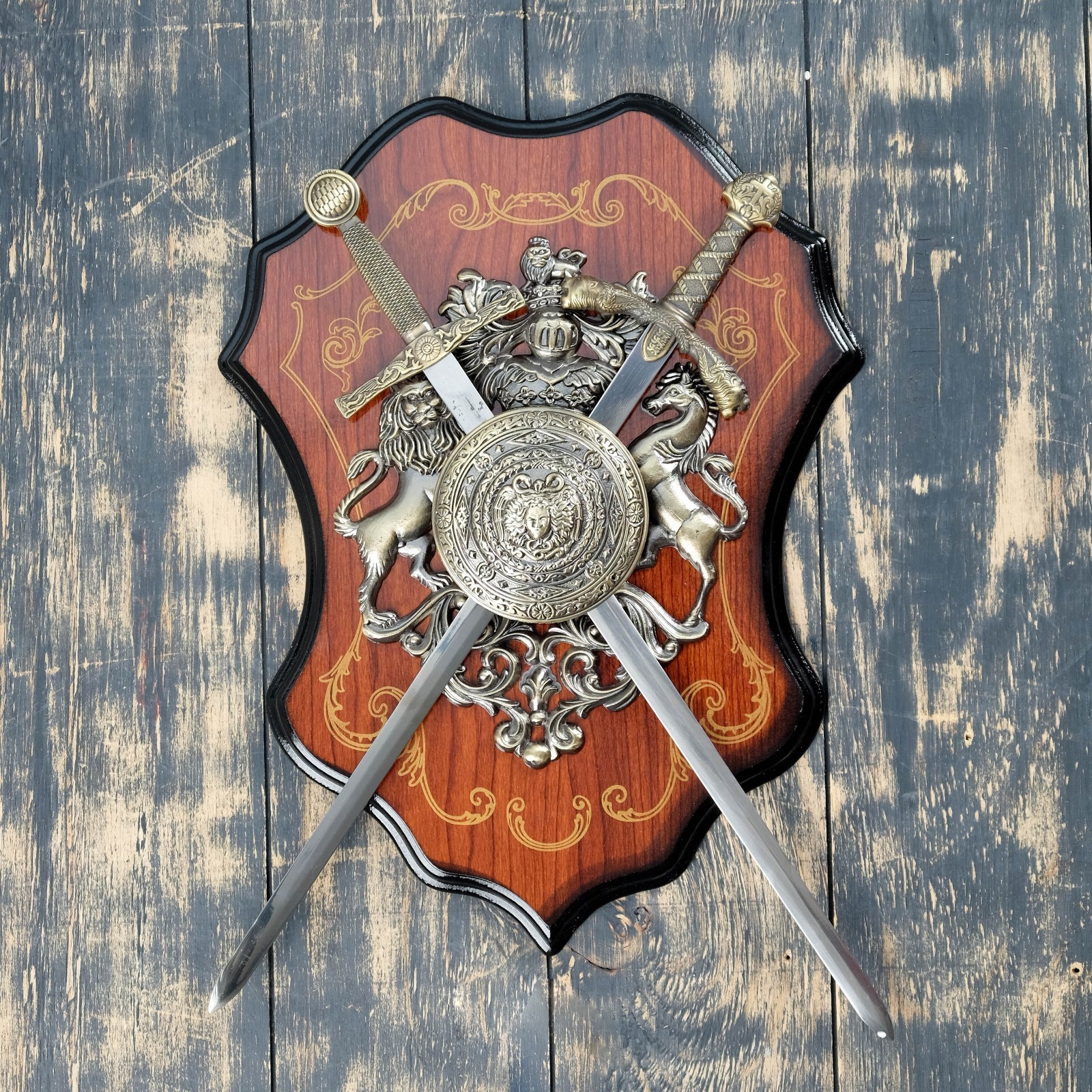 Панно на стену «геральдика. медуза горгона и два меча», декор настенный, щит декоративный