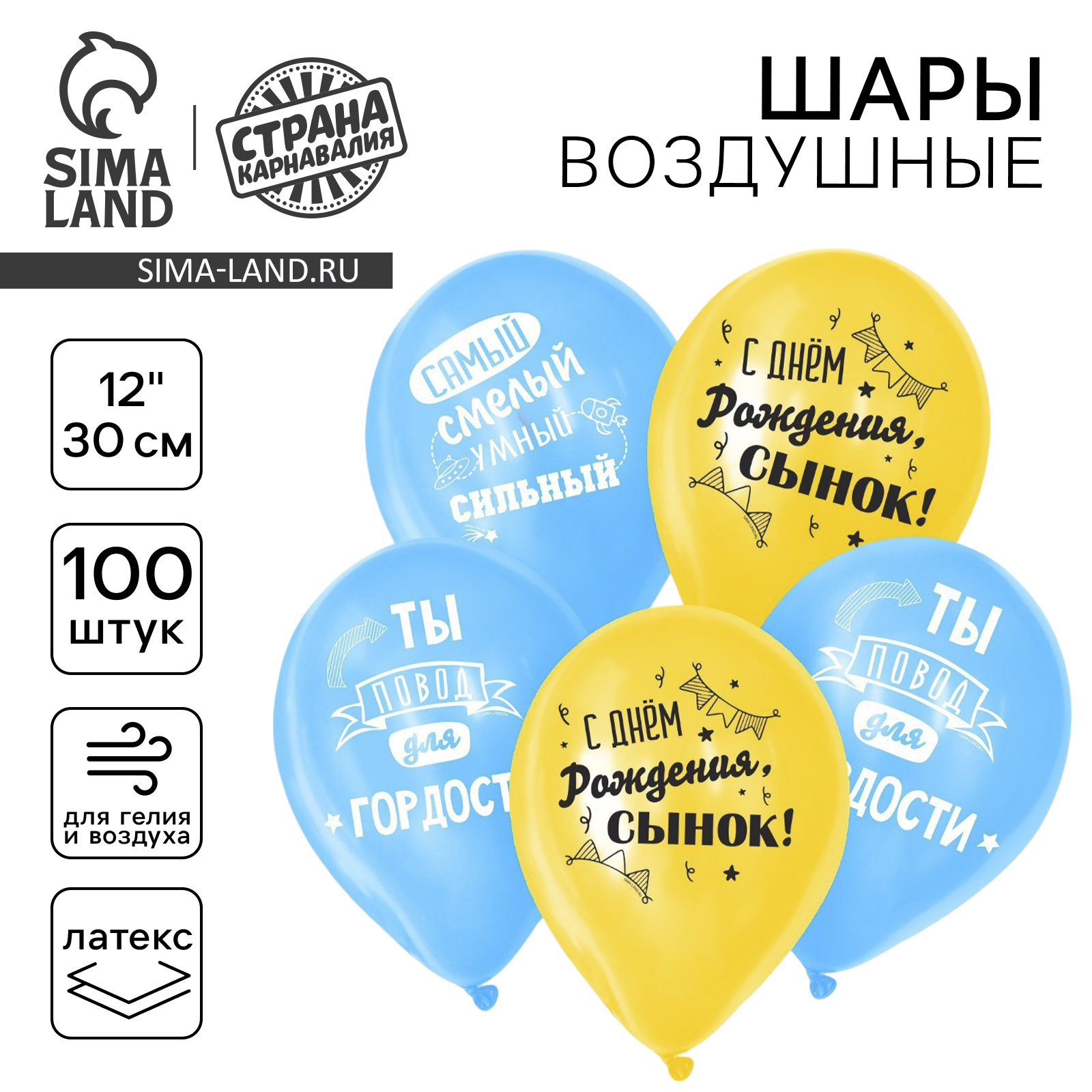 Воздушный шар латексный 12 «с днём рождения, сынок», 100 шт.. Набор:Да|Цвет:Жёлтый|Цвет:Голубой|Возраст:От 14 лет|Диаметр, дюйм:12|В наборе, шт.:100|Тематика праздника:День рождения|Адресат:Именинник|Адресат:Сыну|Материал:Латекс|Тематика рисунка:День Рождения|Вид шара:Классический|Надувка шара:Гелием|Надувка шара:Воздухом|Язык надписи:Русский|Оттенок:Пастель|Страна:Россия  развернуть описание ▼