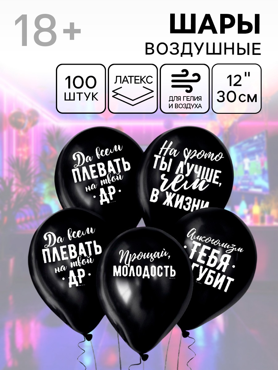 Воздушные шары латексные 12 «оскорбительные», 100 шт., 18+