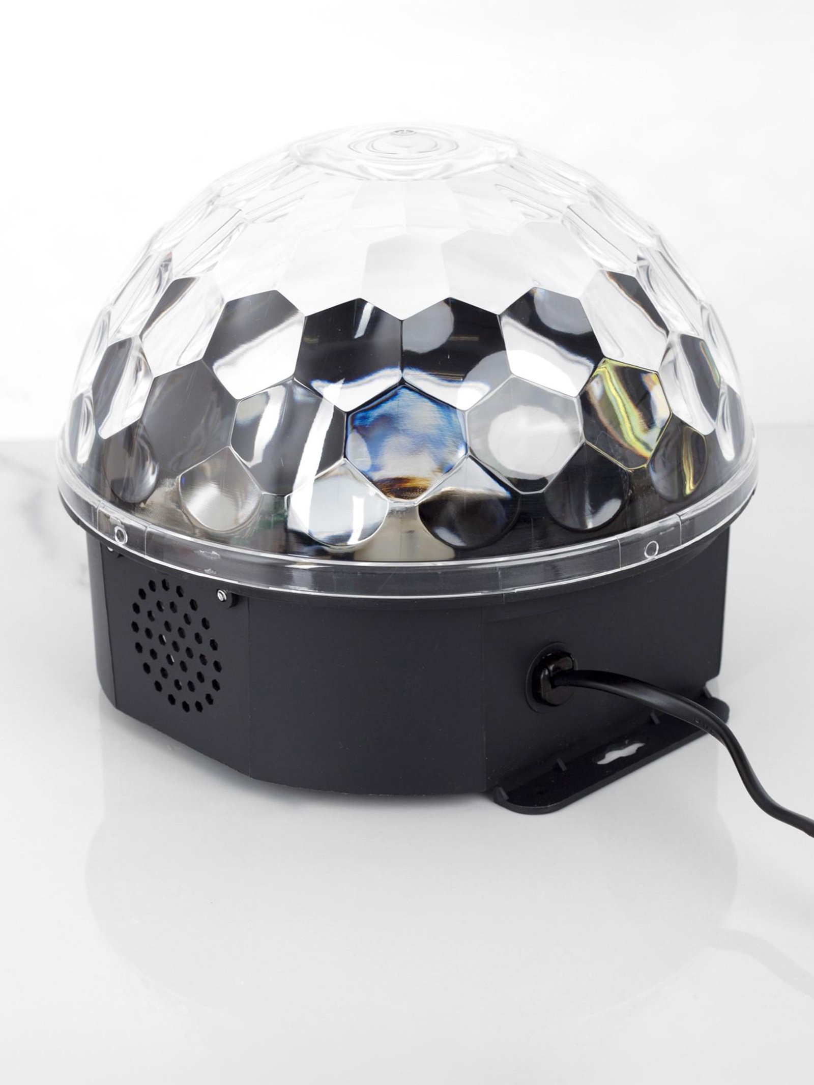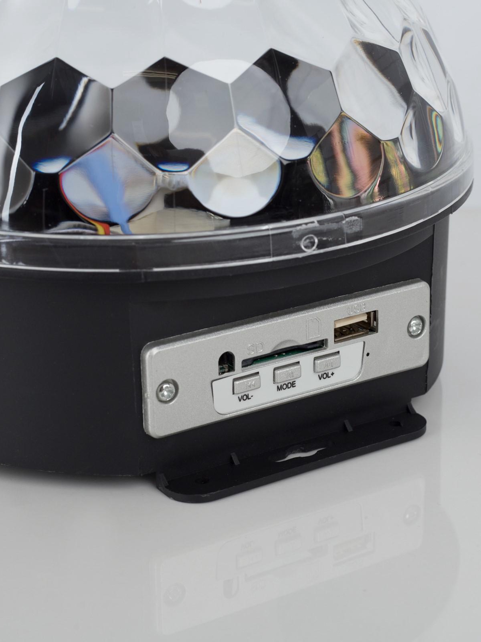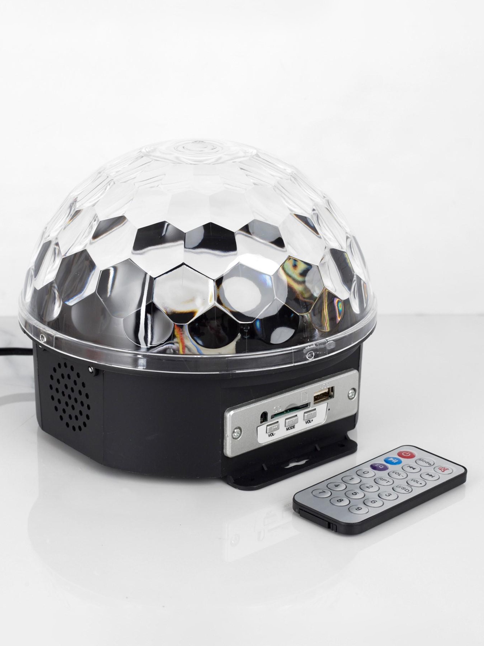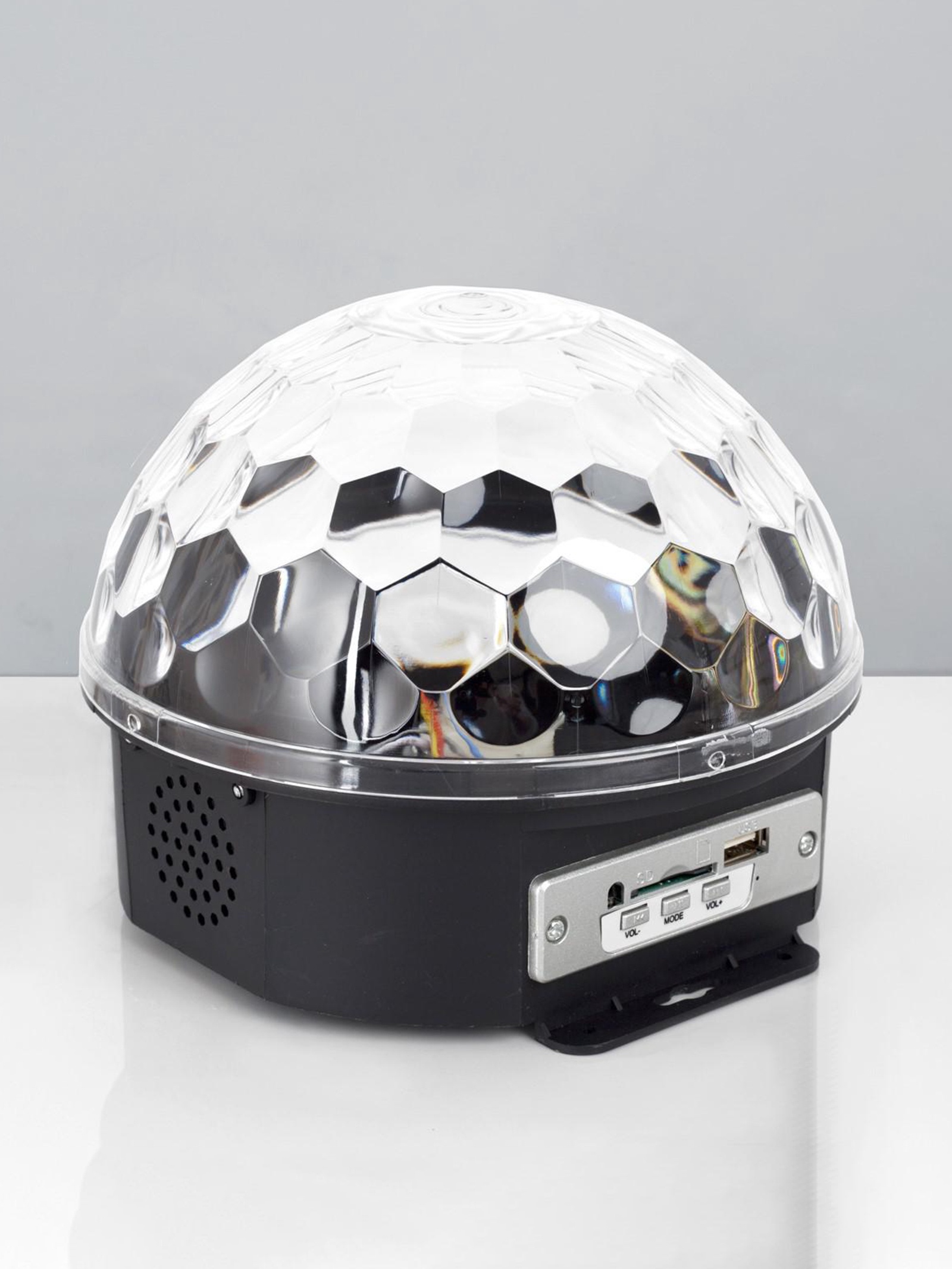 Ночник проектор «хрустальный диско-шар» 17.5 см, динамик, свечение rgb, 220 в.   Благодаря своим уникальным возможностям, компактные световые приборы способны рисовать на предметах интерьера разноцветные узоры с поразительной насыщенностью цветов и четкостью линий. Динамическое вращение цветных рисунков создает яркий праздничный эффект даже в слабо затемненных помещениях. При наличии дымовой завесы не только стены, но и все пространство рассекается сотнями космических лучей, создавая атмосферу реальной клубной вечеринки. Огромное разнообразии эффектов, богатая цветовая гамма и экологическая безопасность светодиодных систем обеспечивает их высокую популярность как среди профессионалов, так и у бытовых потребителей. Световые приборы идеально подойдут для кафе, бара, ресторана, а также квартиры или дачи.  Цвет свечения:RGB|Мощность, Вт:6|Количество режимов:2|Тематика праздника:Новый год|Свечение в ритм музыки:Да|Тип питания:От сети 220 В|Страна:Китай  развернуть описание ▼