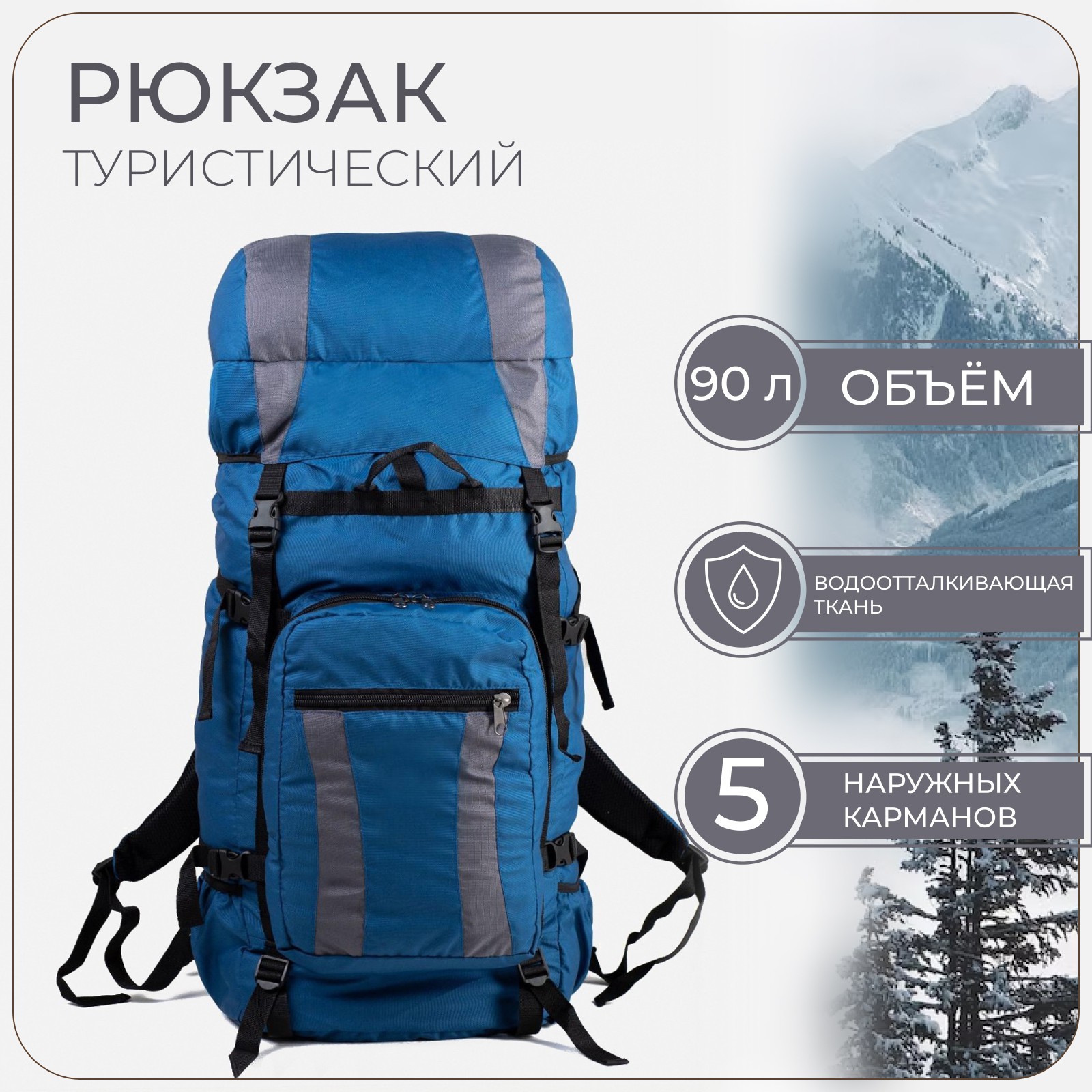 Рюкзак туристический, Taif, 90 л, отдел на шнурке, наружный карман, 2 боковые сетки, цвет синий/серый