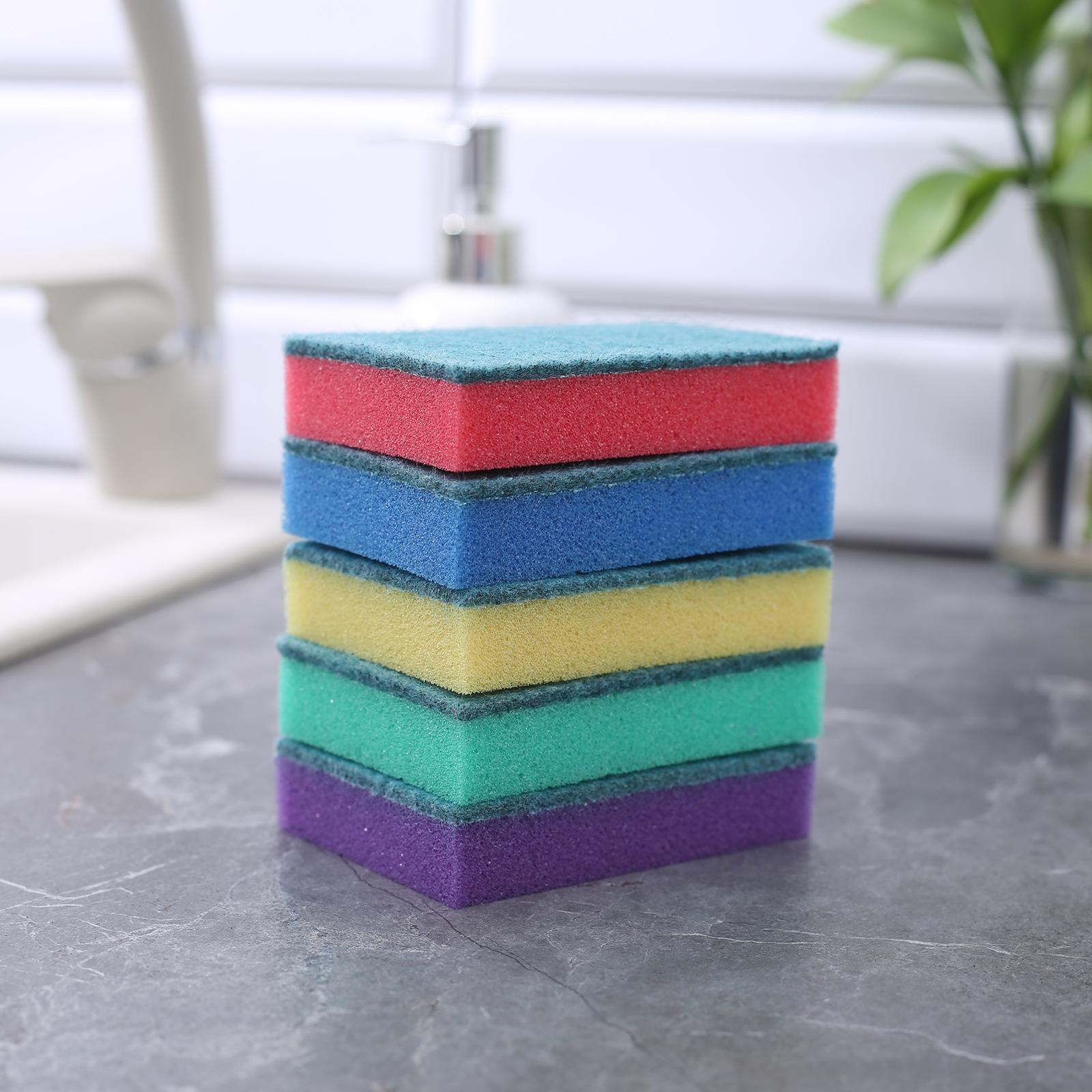 Набор губок бытовых с чистящим слоем доляна «супер», 10x7x2,5 см, 5 шт