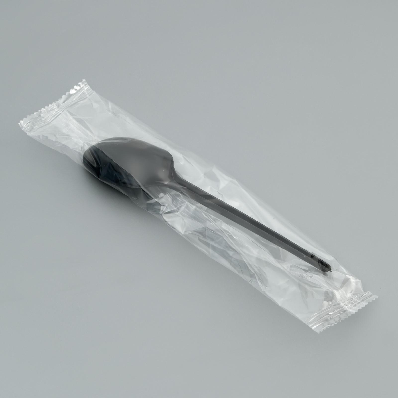 Ложка одноразовая столовая "черная" в индивидуальной упаковке, 16,5 см