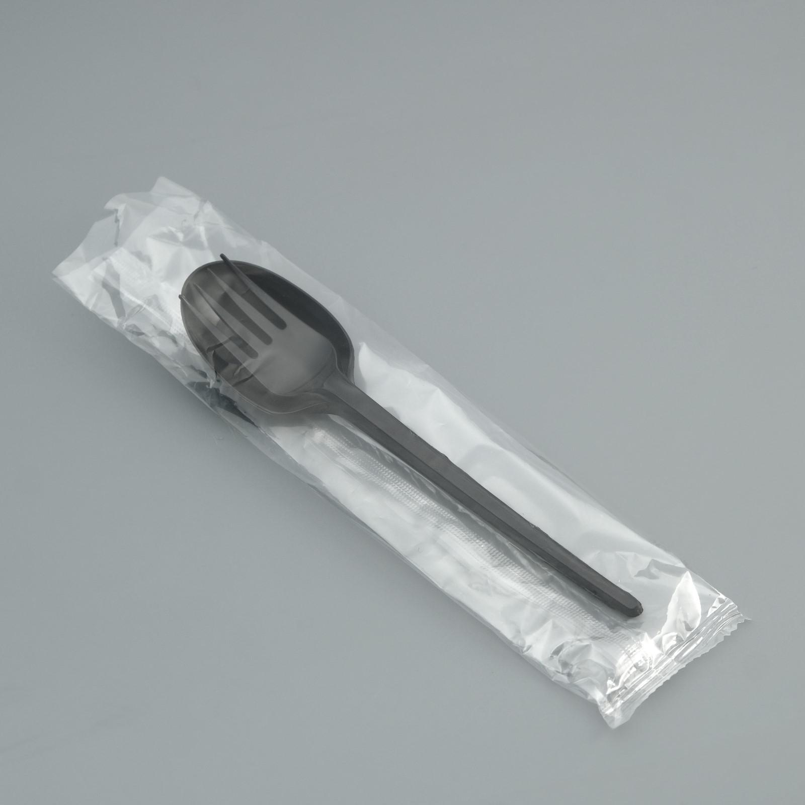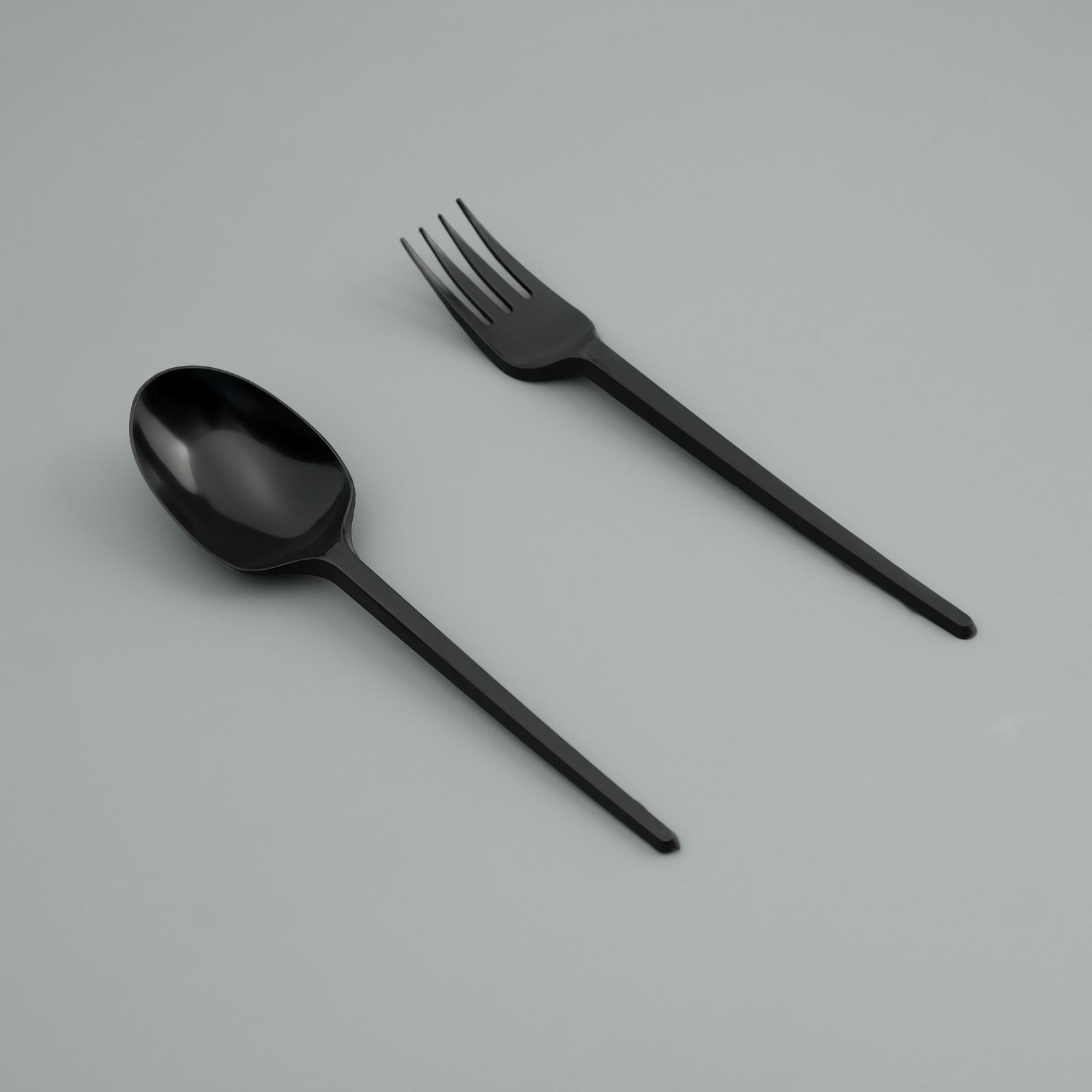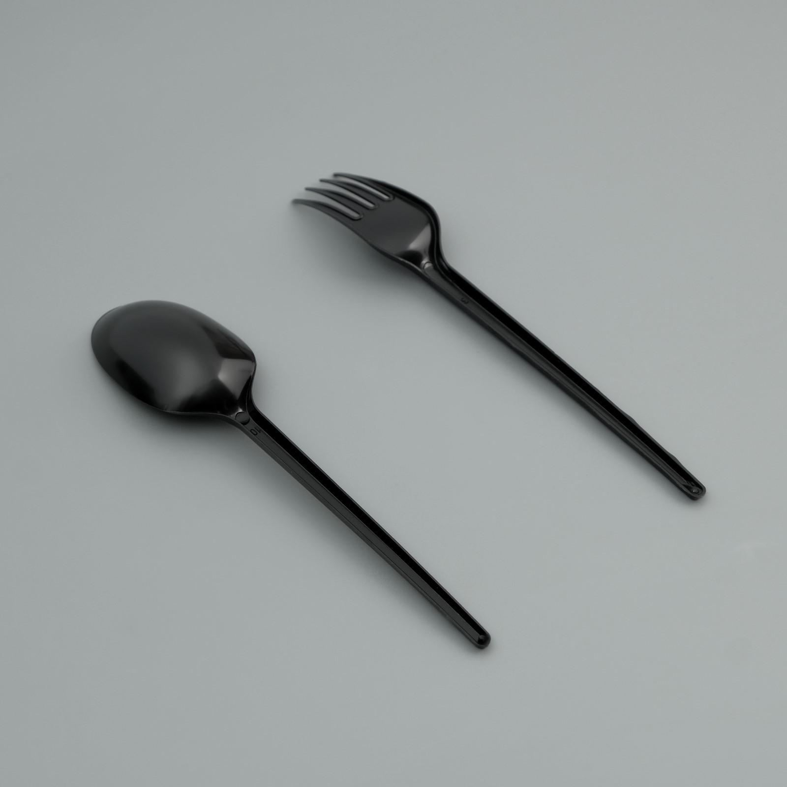 Набор одноразовой посуды "вилка, ложка" черный, 16,5 см