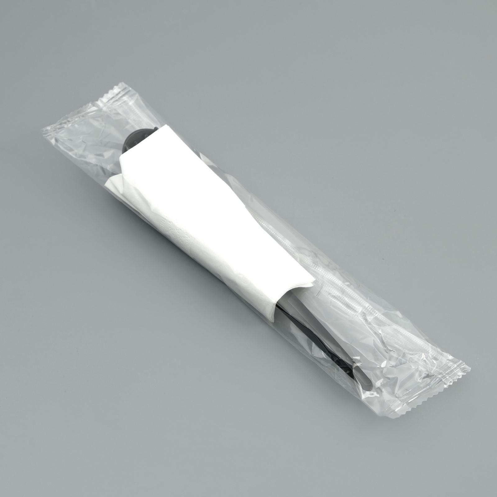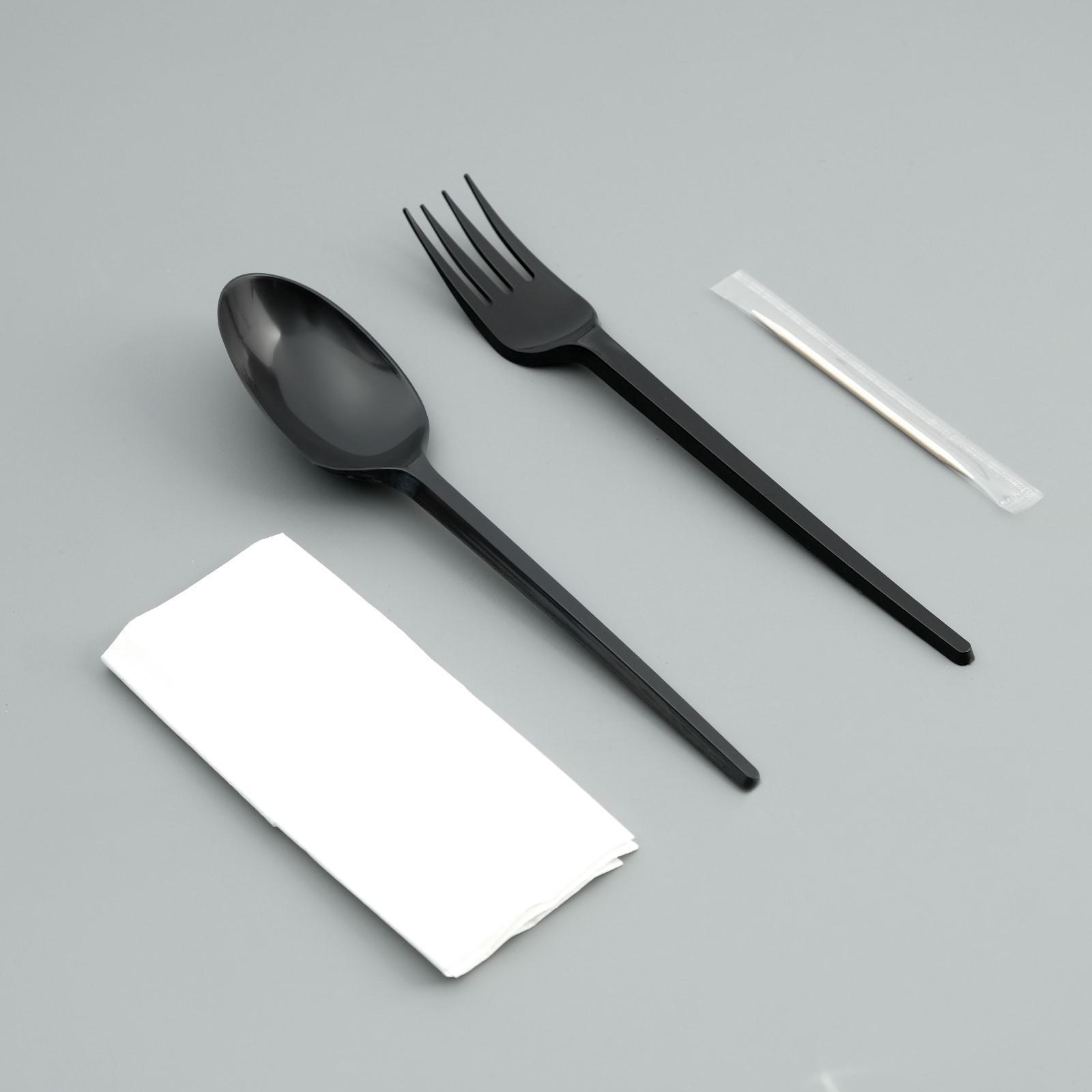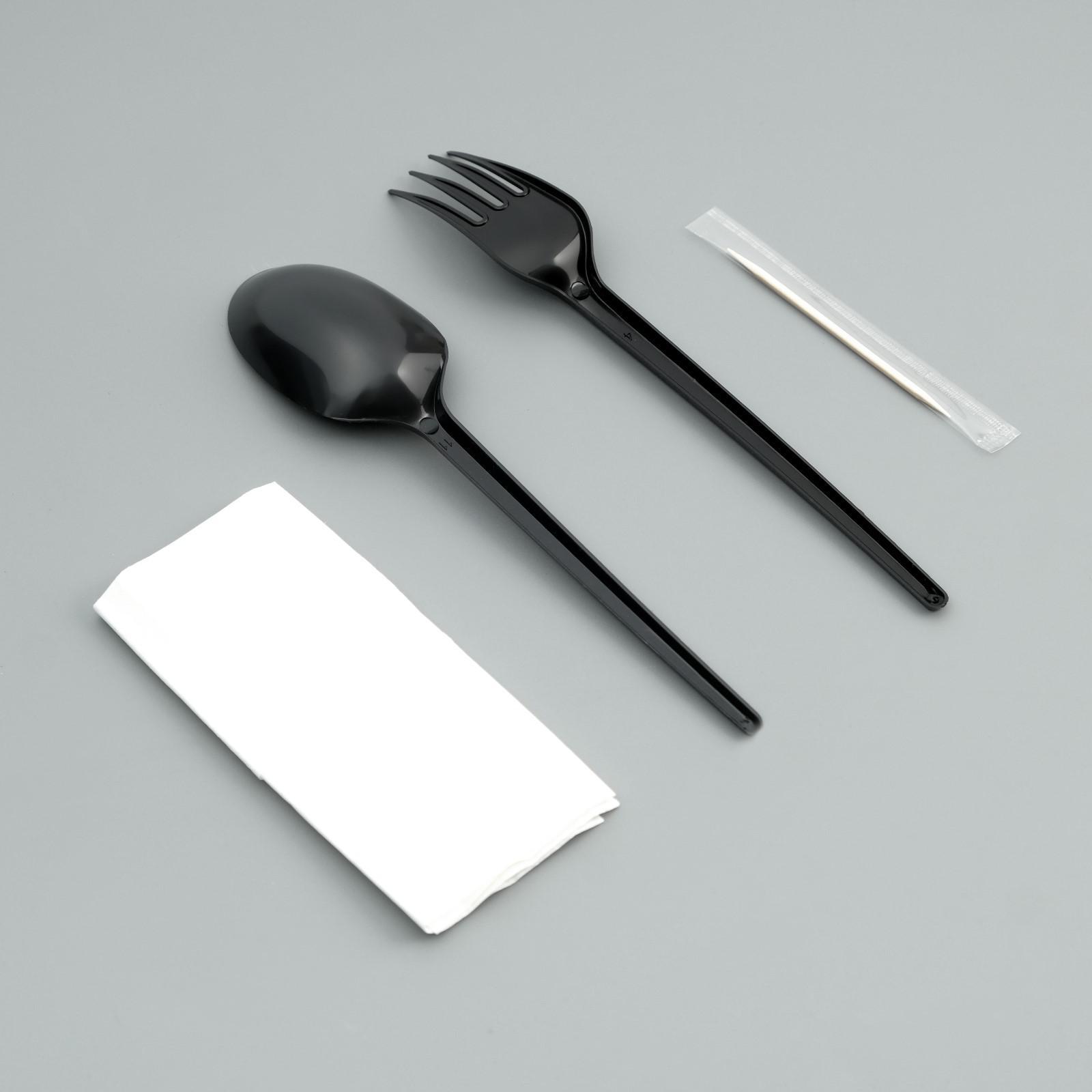 Набор одноразовой посуды "вилка, ложка, салф.бум., зубочистка" черный, 16,5 см