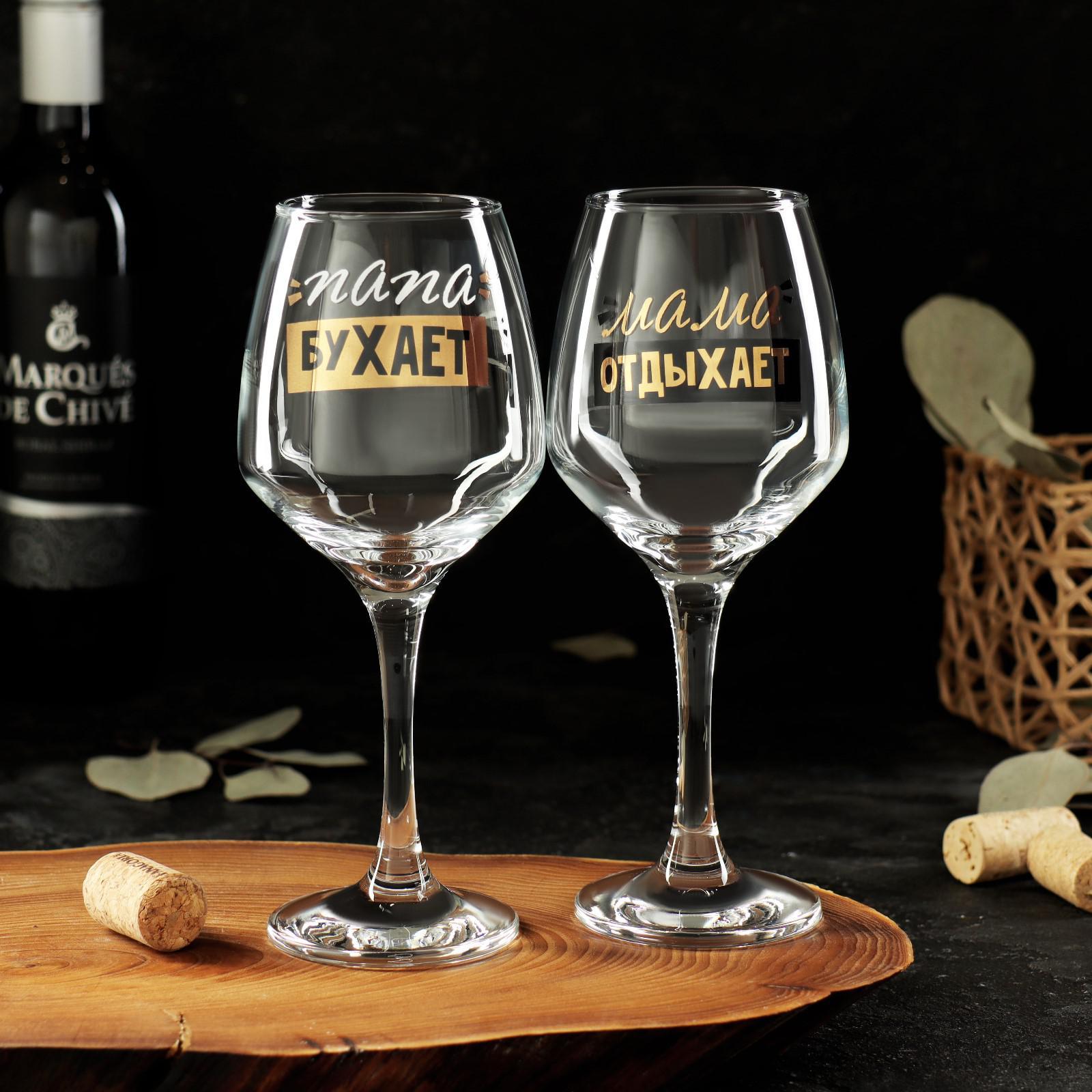 Набор бокалов для вина «семейный», 350 мл., 2 штуки, деколь