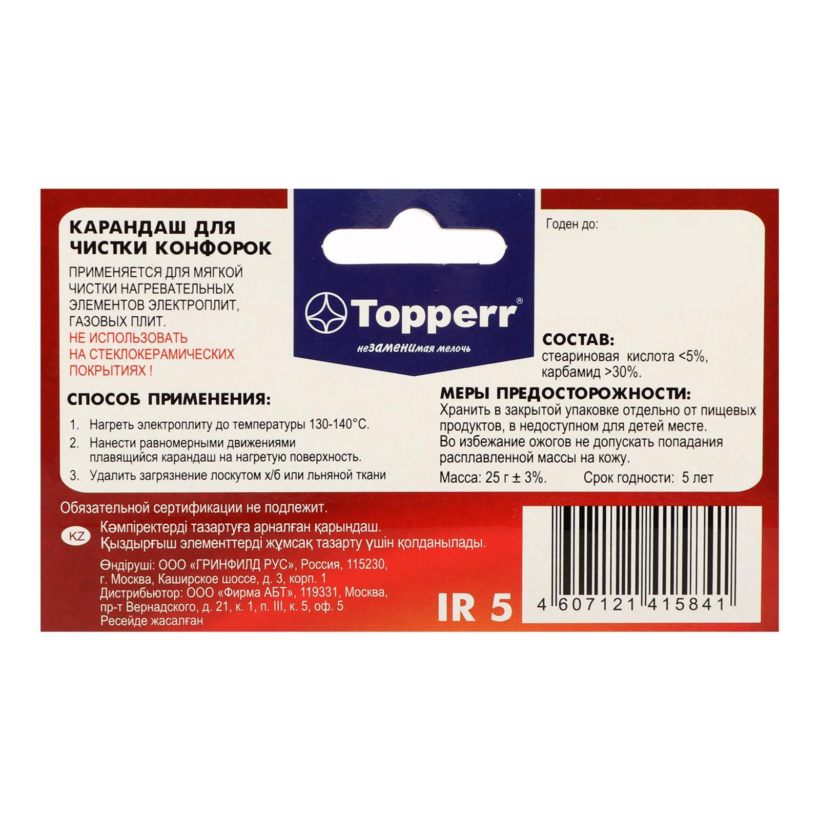 Карандаш для чистки конфорок электро- и газовых плит.. Карандаш для чистки конфорок электро- и газовых плит - это удобный и эффективный инструмент для поддержания чистоты вашей плиты. Он быстро и легко удаляет нагар, жир и другие загрязнения с поверхности конфорок, возвращая им первоначальный блеск и функциональность. Карандаш прост в использовании: достаточно нанести его на загрязненную поверхность и оставить на несколько минут, затем протереть влажной салфеткой. Этот продукт безопасен для всех типов плит и не вызывает коррозии. parts count: 0 Назначение: Для кухонной техники Температурное ограничение: Нет  развернуть описание ▼
