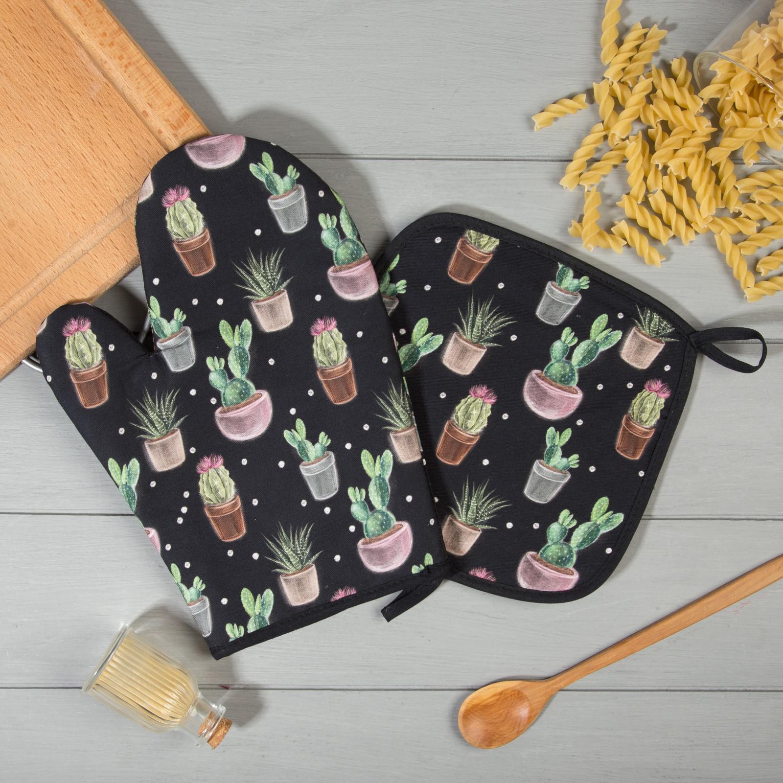 Набор кухонный этель "Succulents" варежка-прихватка 20х27 см, прихватка 19х19 см, 100% хлопок