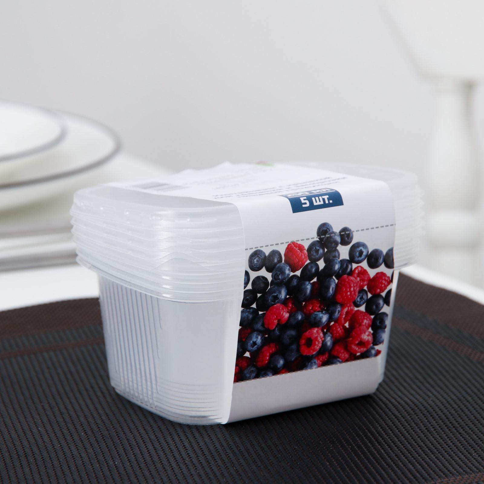 Набор пластиковых одноразовых контейнеров, 250 мл, 10,8x8,2 см, 5 шт, с крышкой, цвет прозрачный